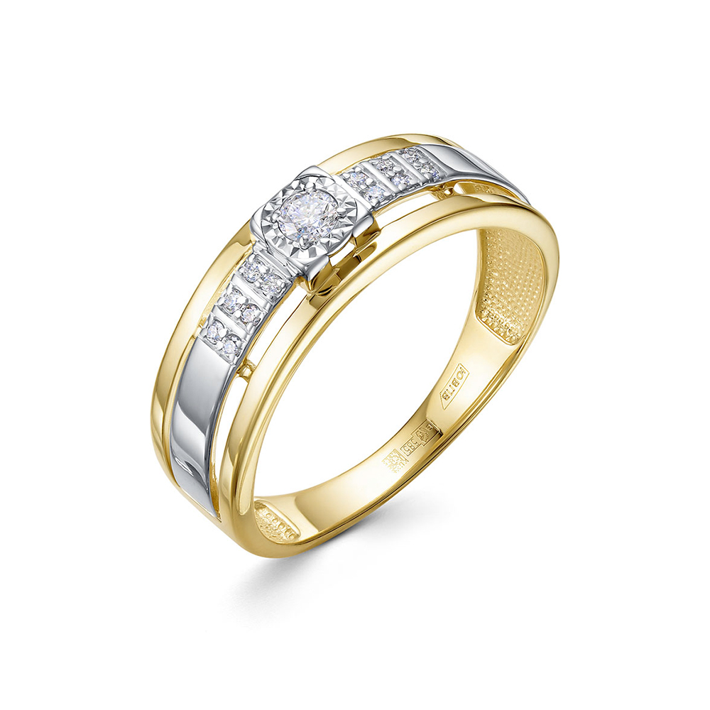 Кольцо с 13 бриллиантами из лимонного золота 128987_17.5