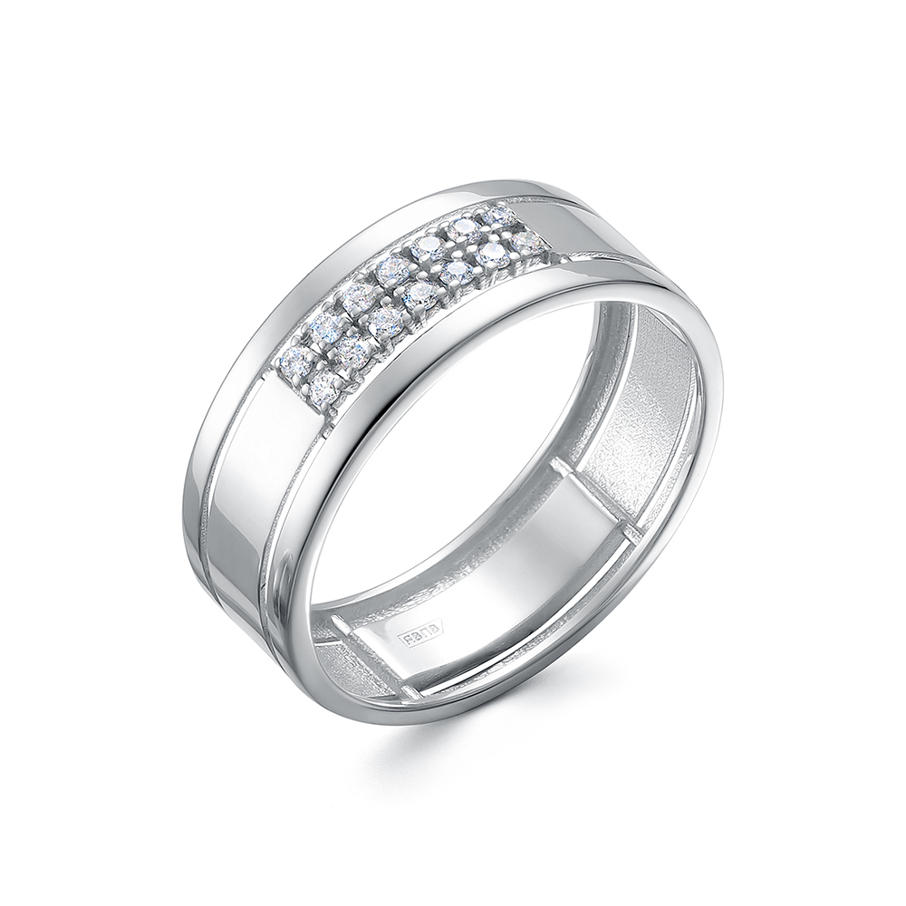Кольцо с 14 бриллиантами 0.098 карат из белого золота 141468_17.5