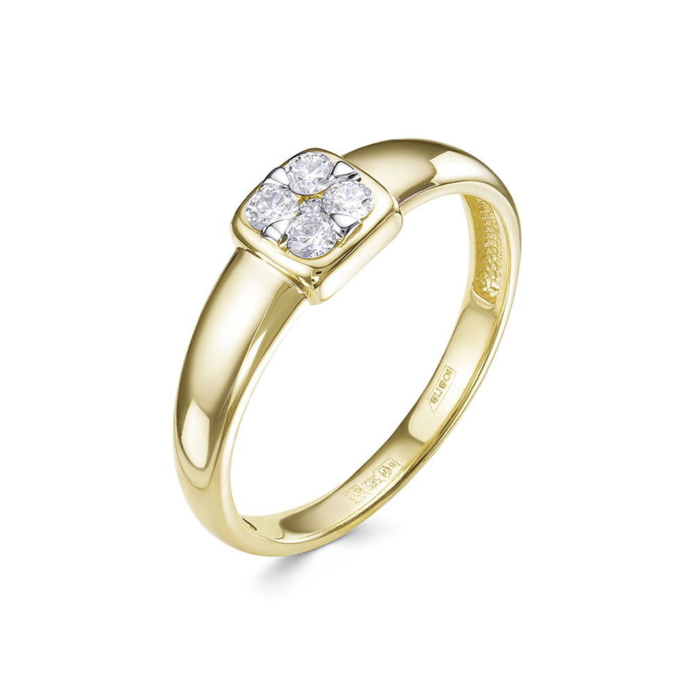 Кольцо с 5 бриллиантами из лимонного золота 133918_15.5