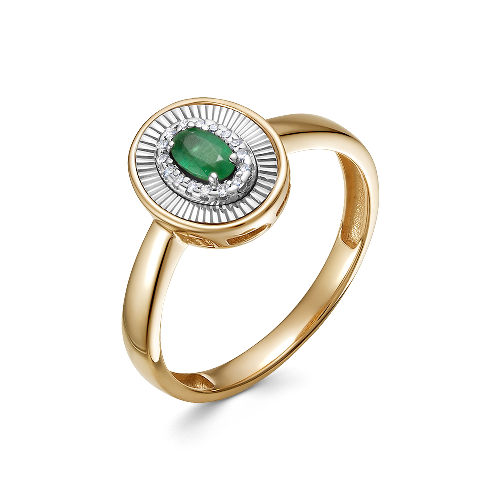 Кольцо с изумрудом и 16 бриллиантами из красного золота 137794