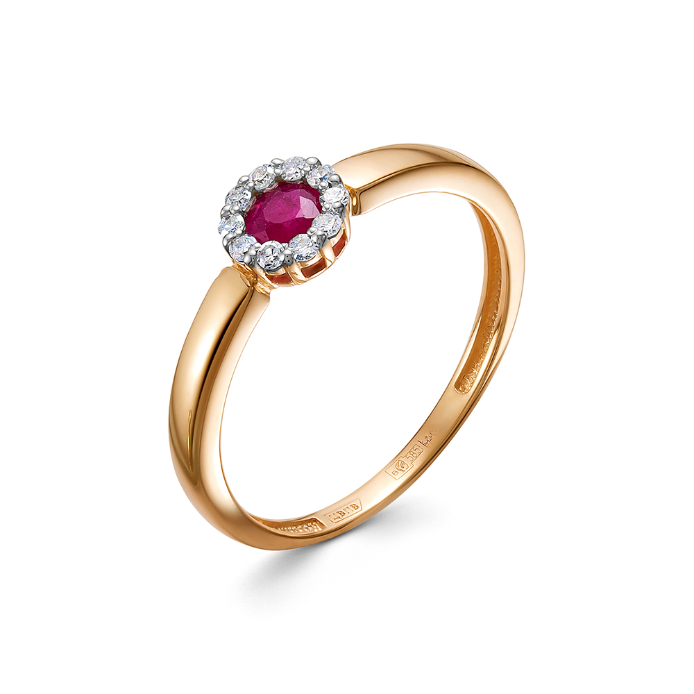 Кольцо с рубином и 10 бриллиантами из красного золота 143427_17.5