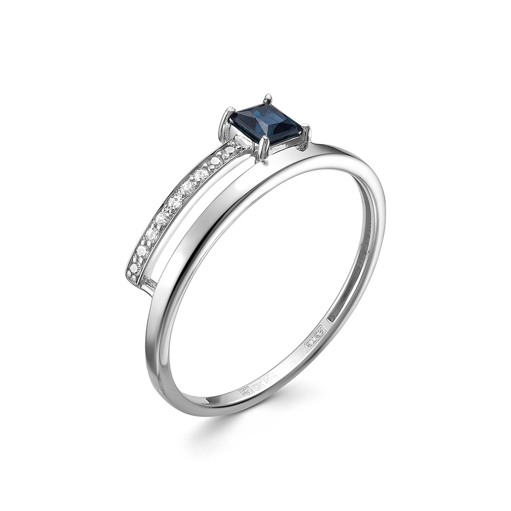 Кольцо с сапфиром и 9 бриллиантами из белого золота 142183_21.5