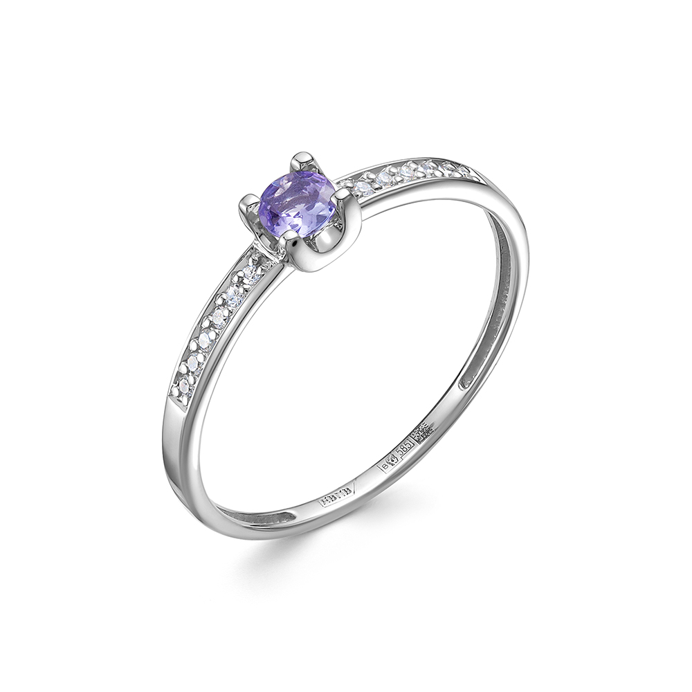 Кольцо с танзанитом и 12 бриллиантами из белого золота 142231_17.5