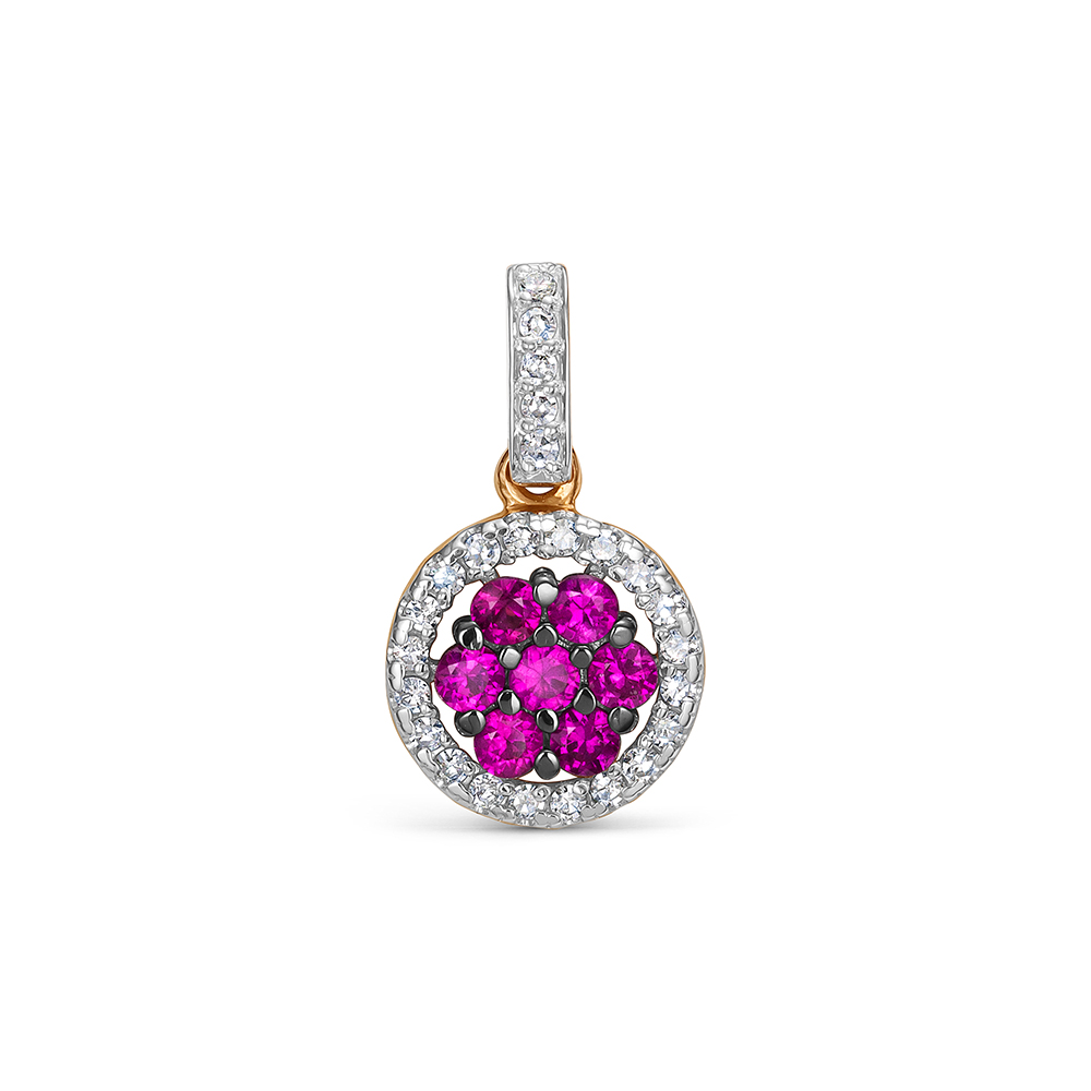 Подвеска с 7 рубинами и 25 бриллиантами из красного золота 142908