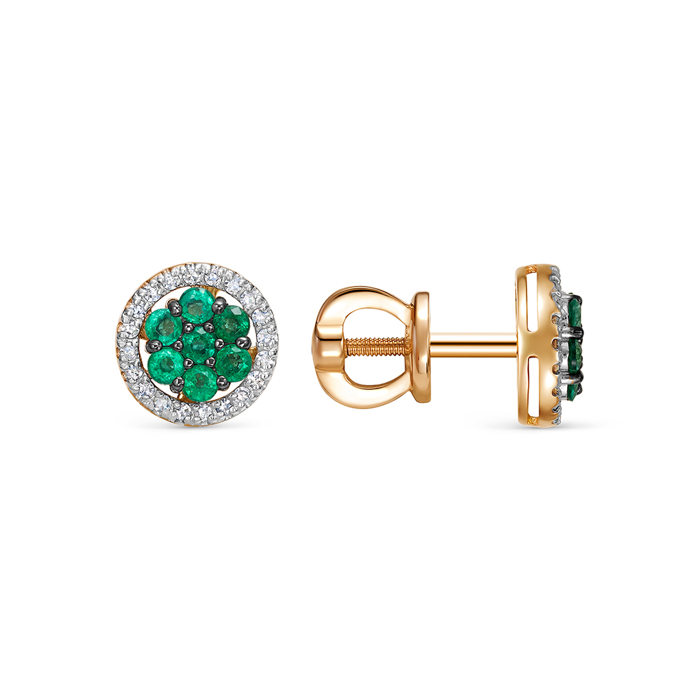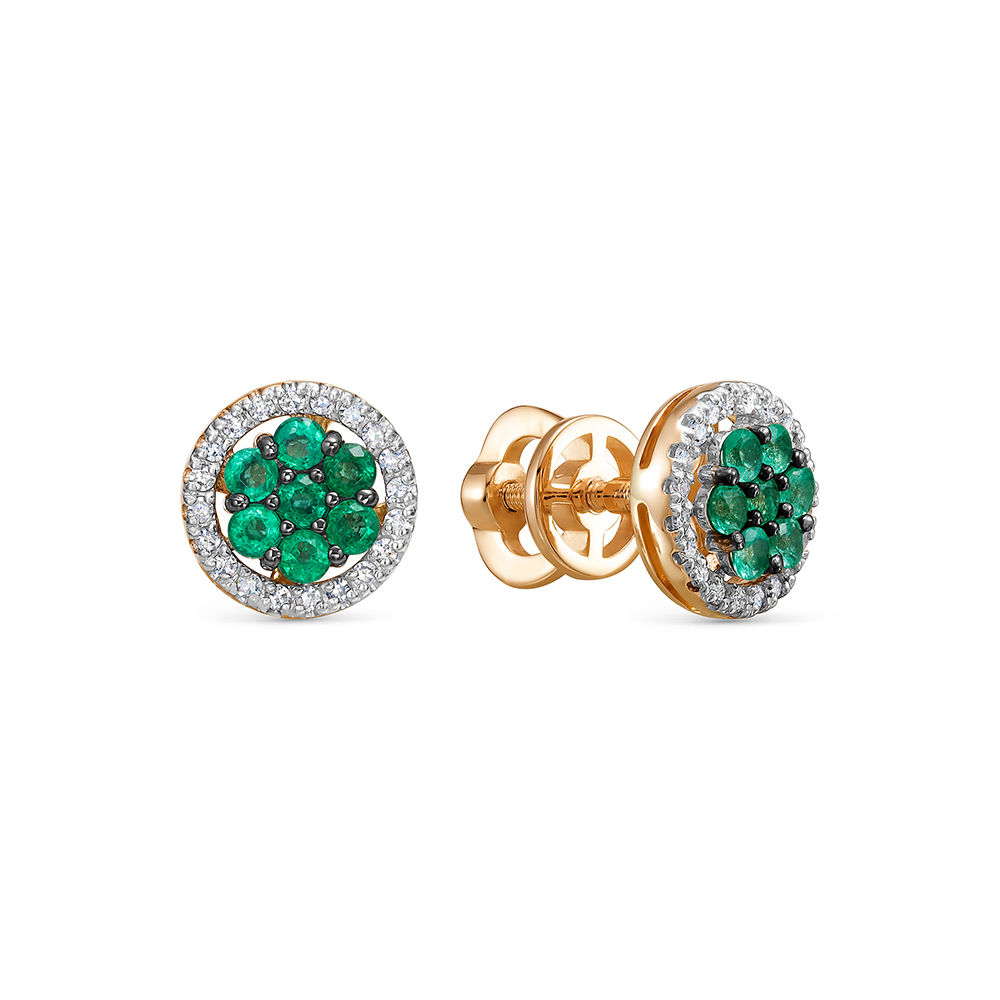 Серьги-пусеты с 14 изумрудами и 40 бриллиантами из красного золота 143715