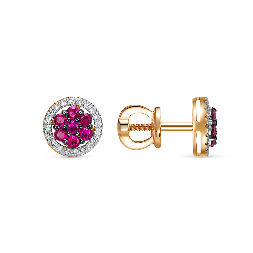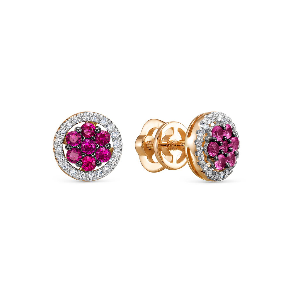 Серьги-пусеты с 14 рубинами и 40 бриллиантами из красного золота 143716