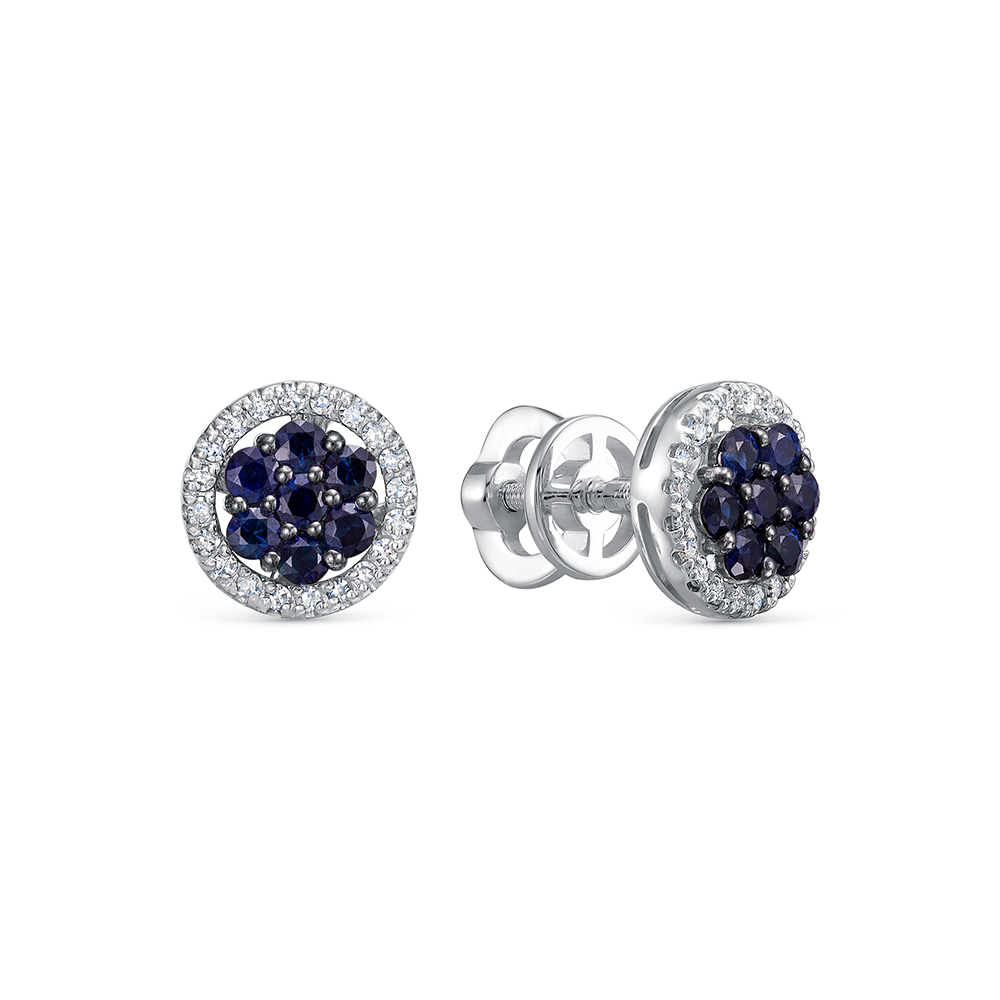 Серьги-пусеты с 14 сапфирами и 40 бриллиантами из белого золота 143717