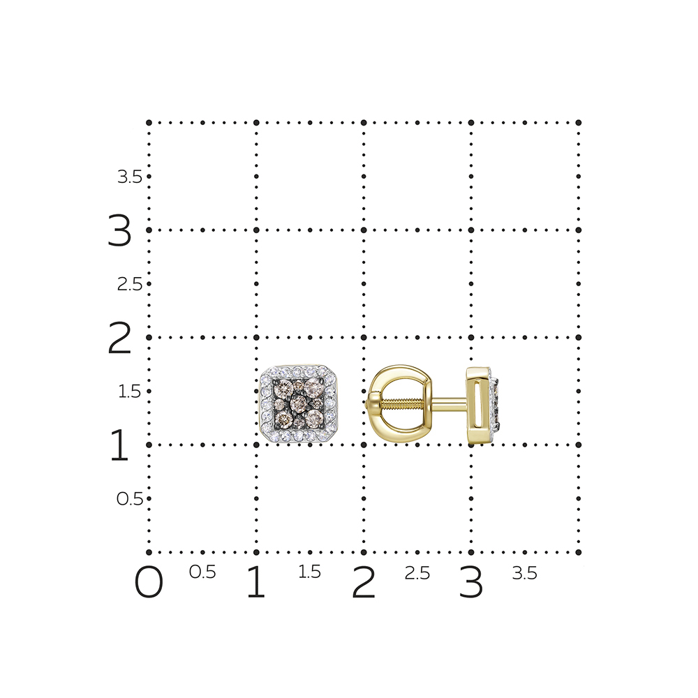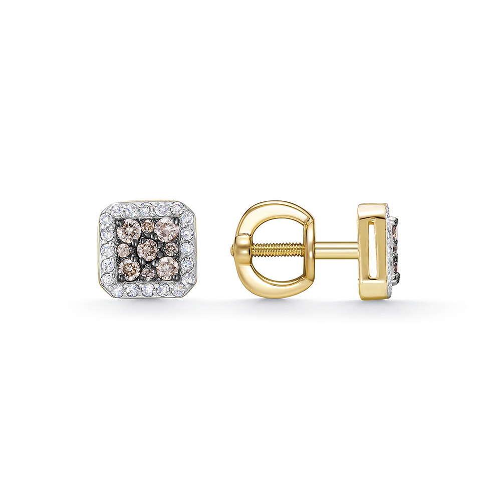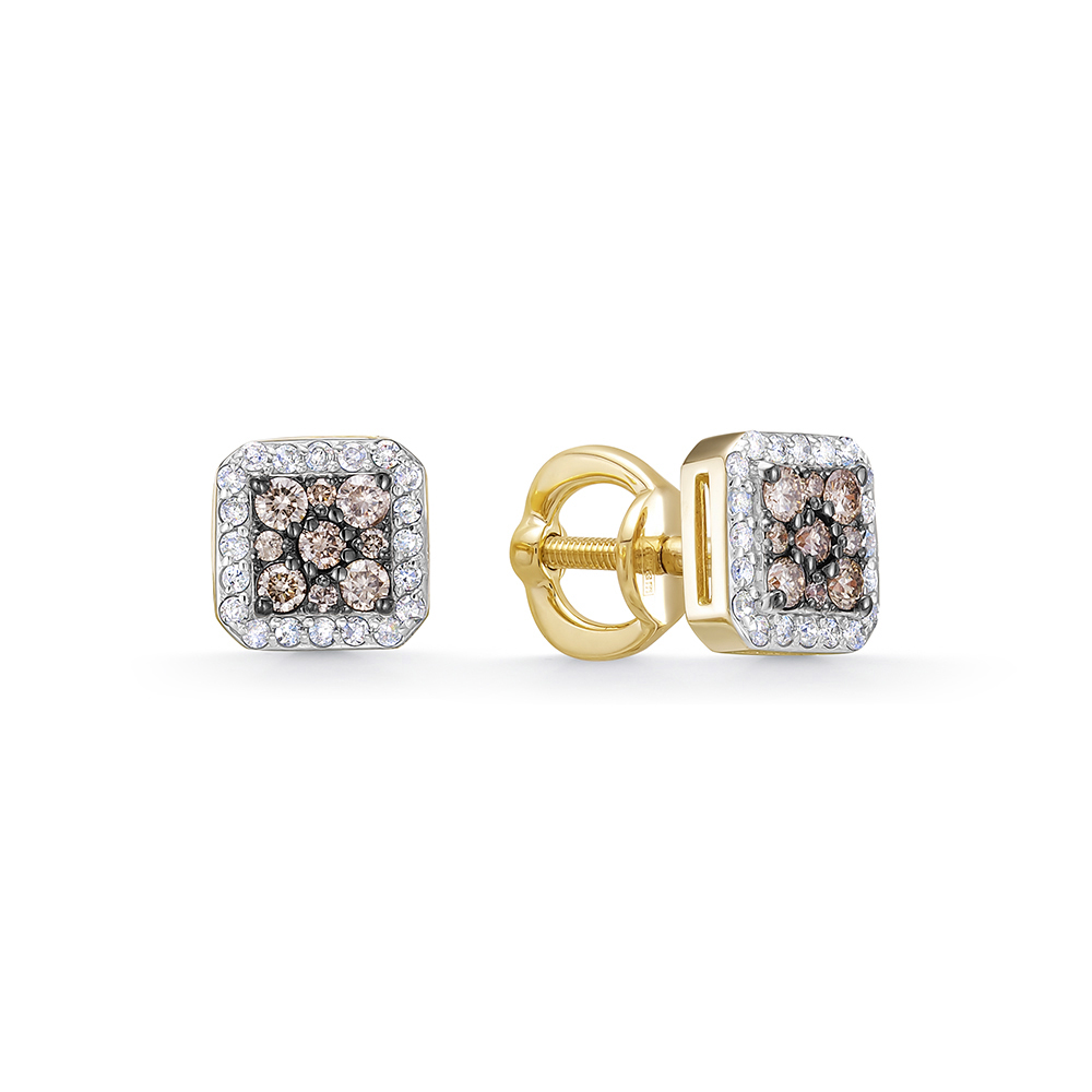 Серьги-пусеты с 18 коньячными бриллиантами и 40 бриллиантами из лимонного золота 141494