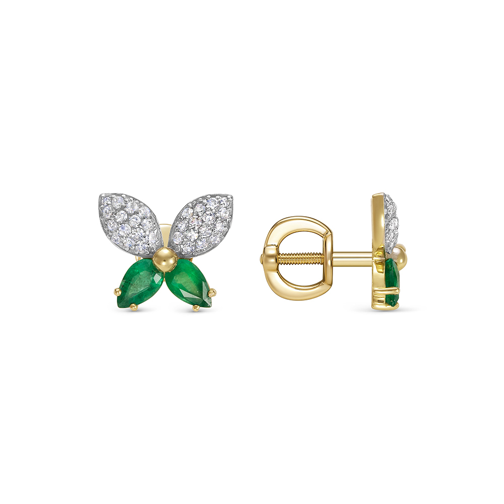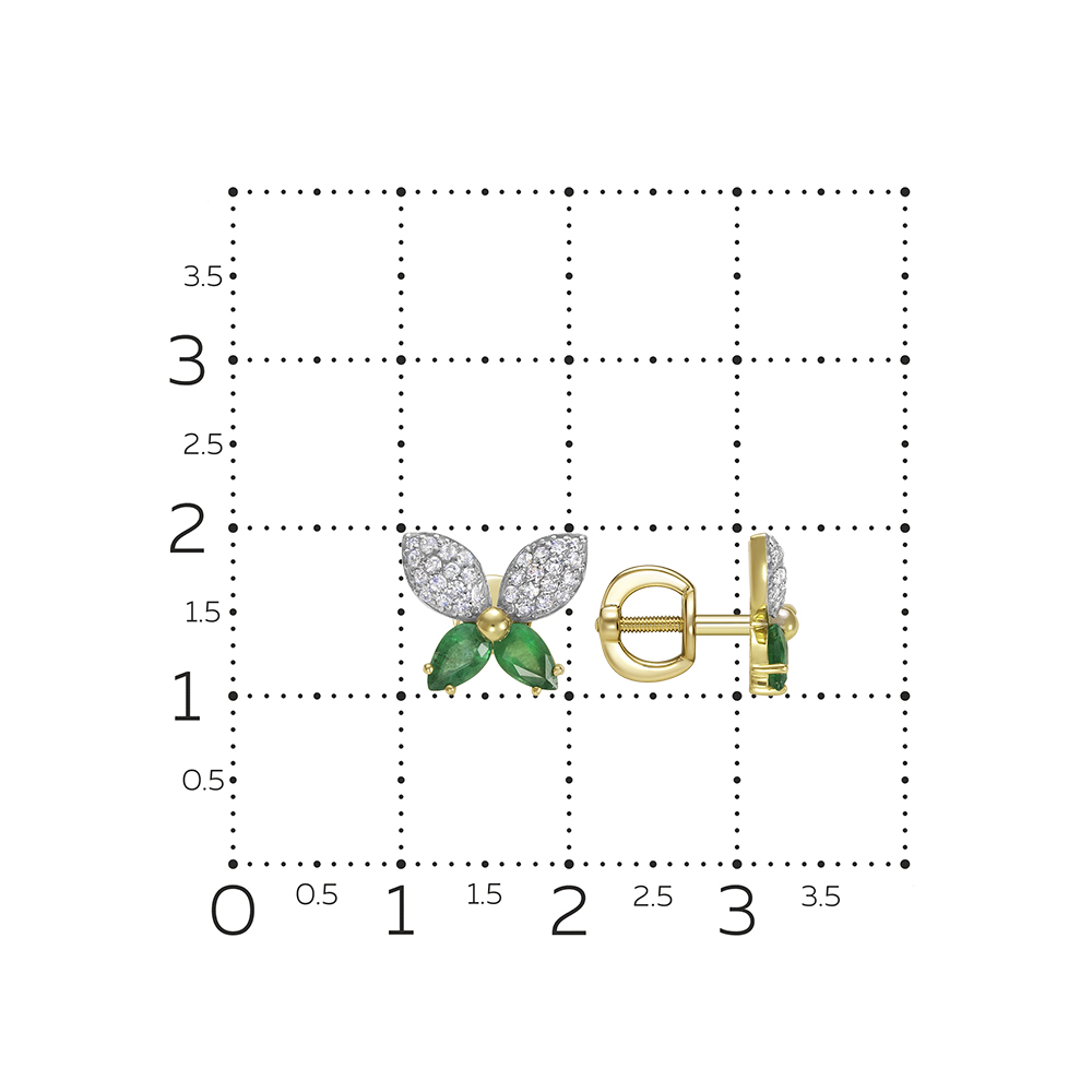 Серьги-пусеты с 4 изумрудами и 60 бриллиантами из лимонного золота 131567