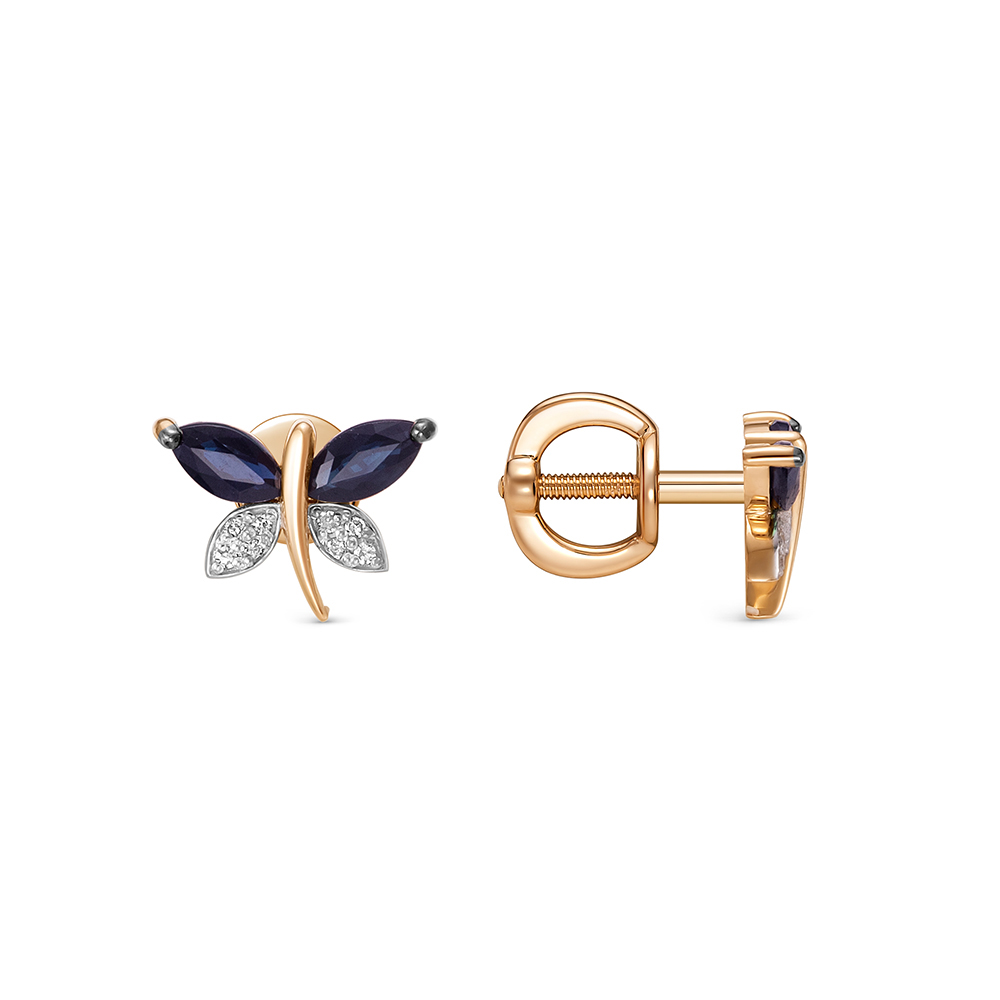 Серьги-пусеты с 4 сапфирами и 16 бриллиантами из красного золота 131569