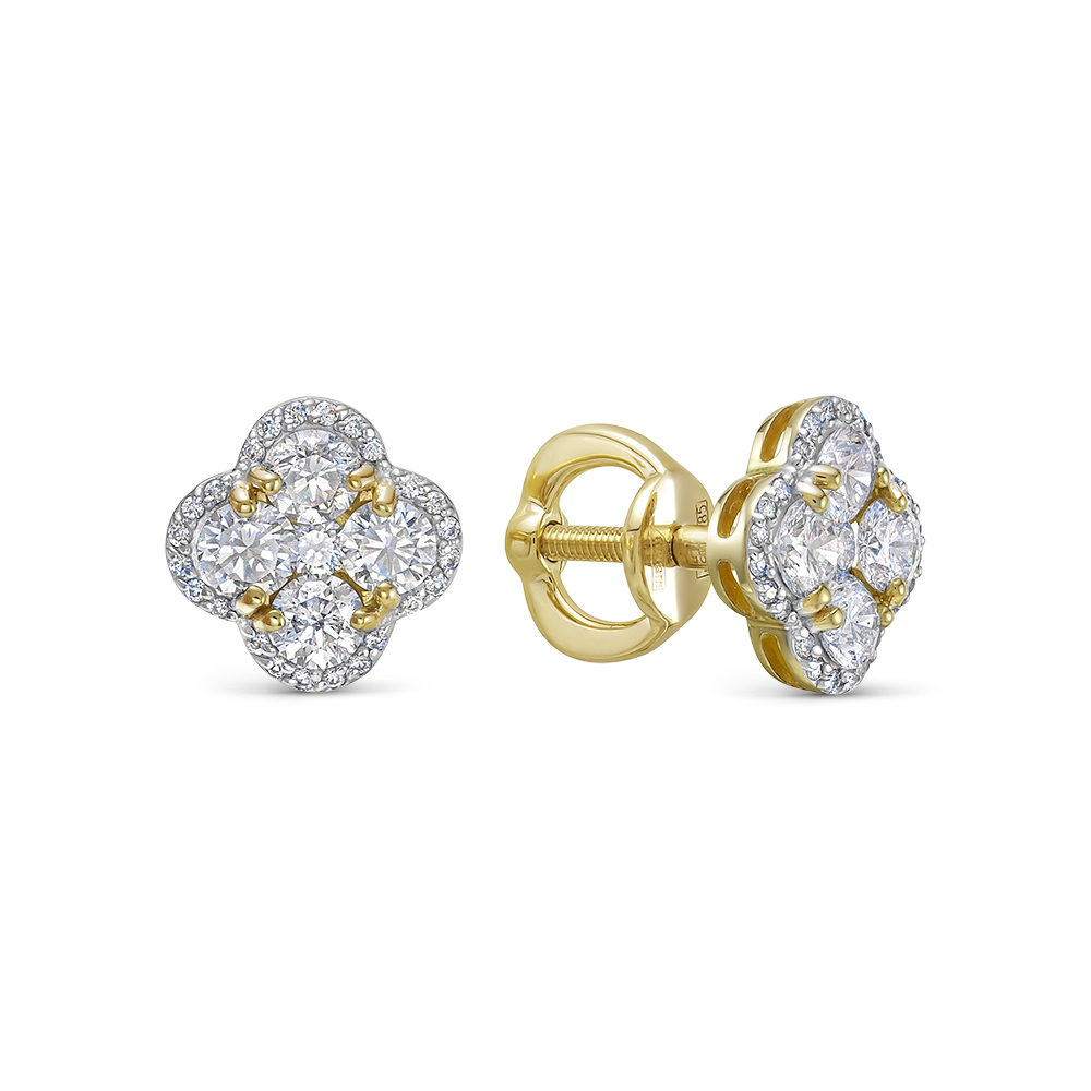 Серьги-пусеты с 58 бриллиантами из лимонного золота 93627