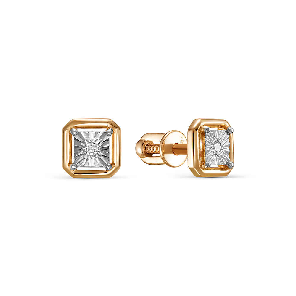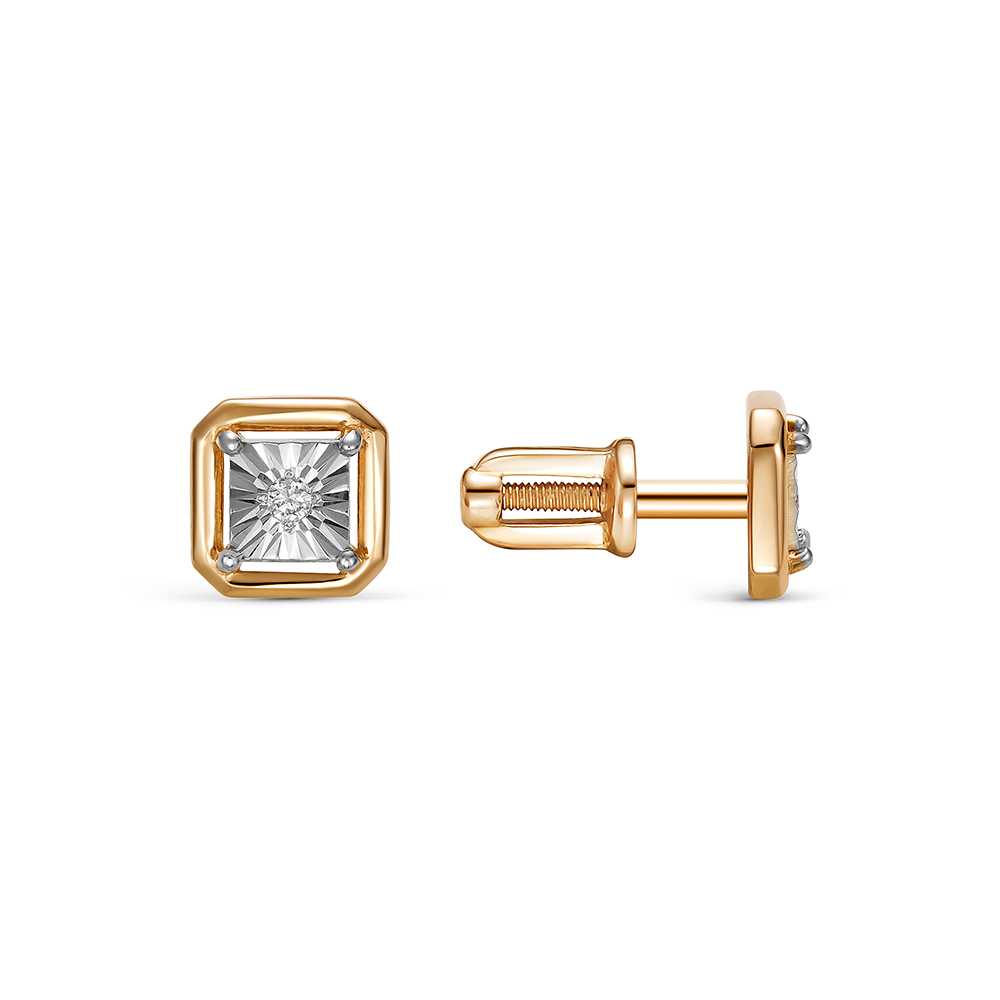 Серьги-пусеты с бриллиантами 0.03 карат из красного золота 143722