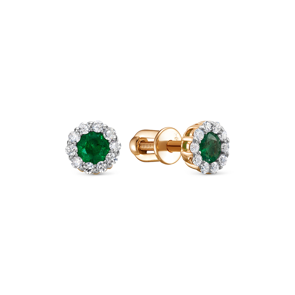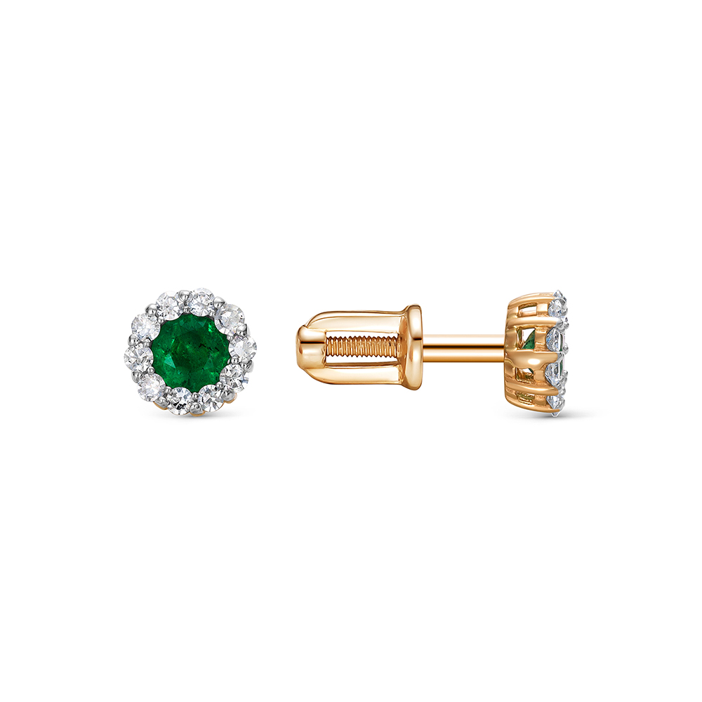 Серьги-пусеты с изумрудами и 20 бриллиантами из красного золота 143712