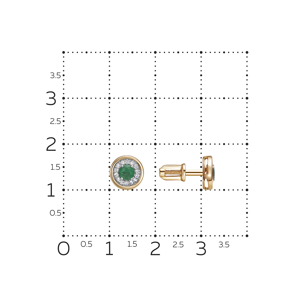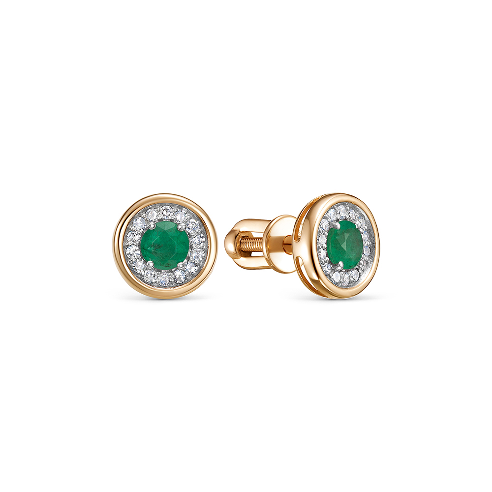 Серьги-пусеты с изумрудами и 28 бриллиантами из красного золота 143135