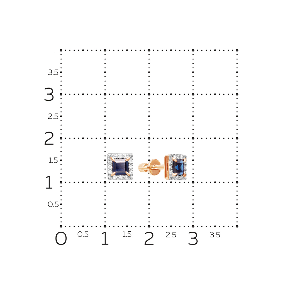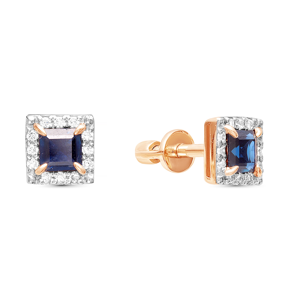 Серьги-пусеты с сапфирами и 24 бриллиантами из красного золота 110387