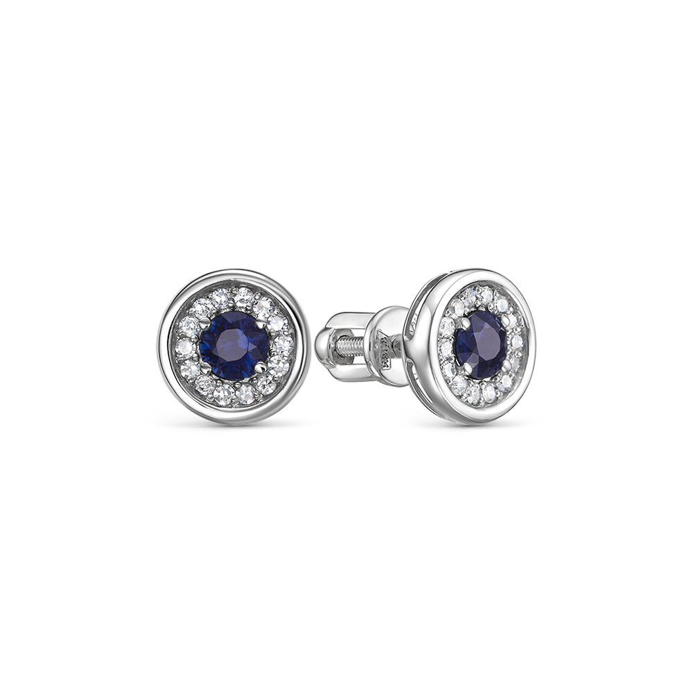Серьги-пусеты с сапфирами и 28 бриллиантами из белого золота 143137