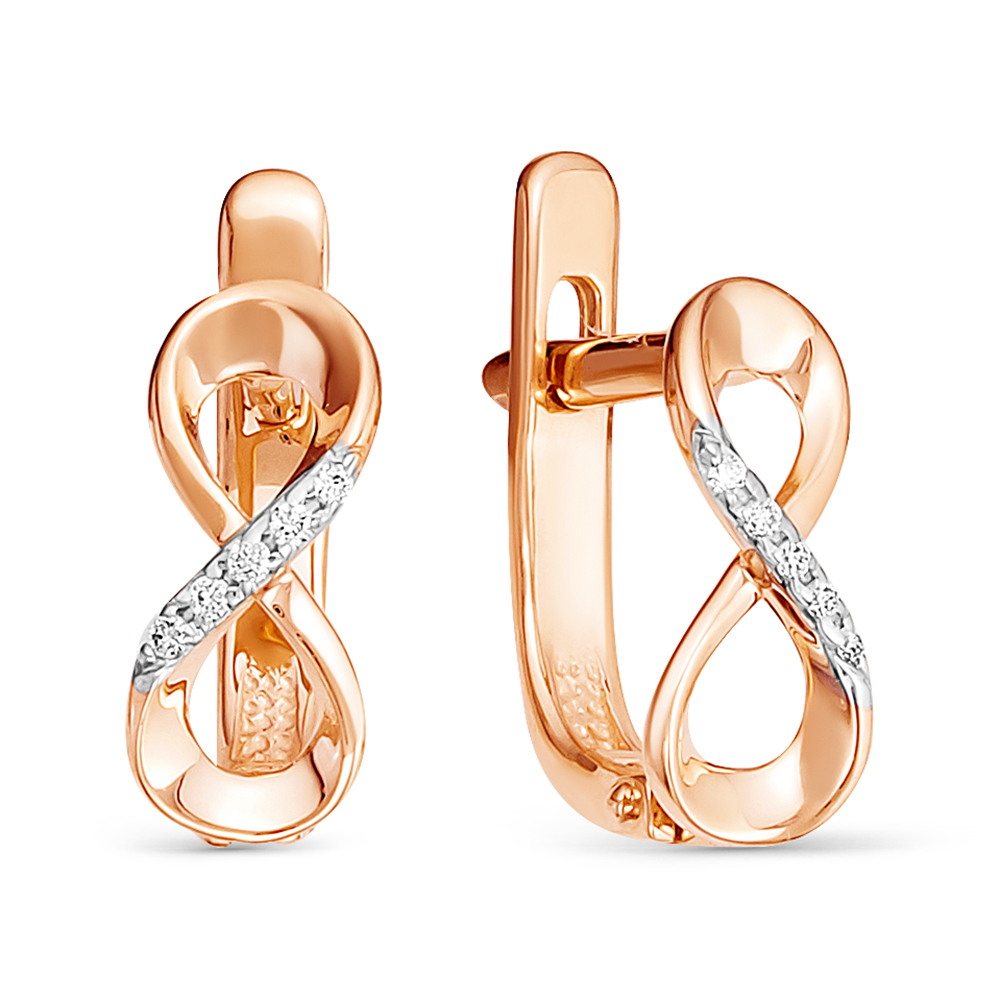 Серьги с 10 бриллиантами 0.03 карат из красного золота 54111