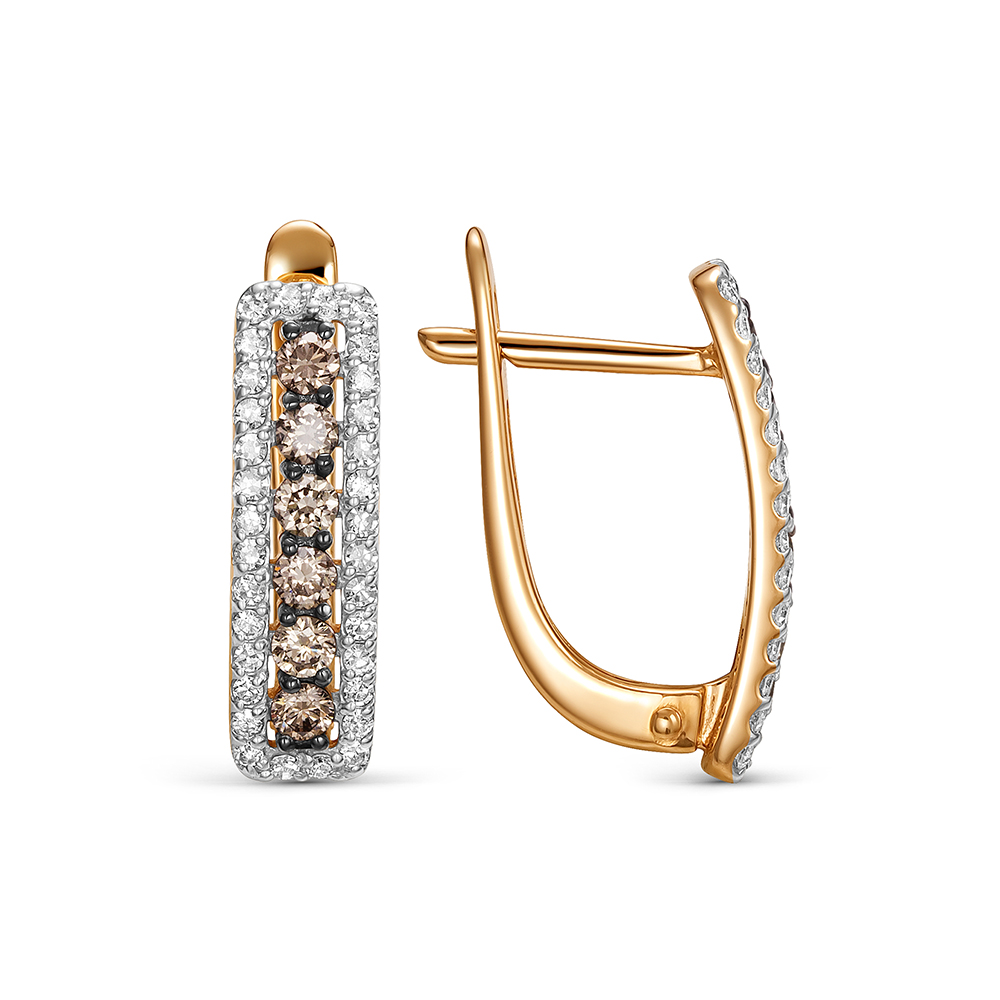 Серьги с 12 коньячными бриллиантами и 64 бриллиантами из красного золота 142863