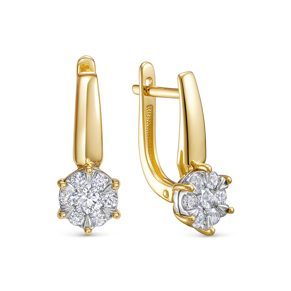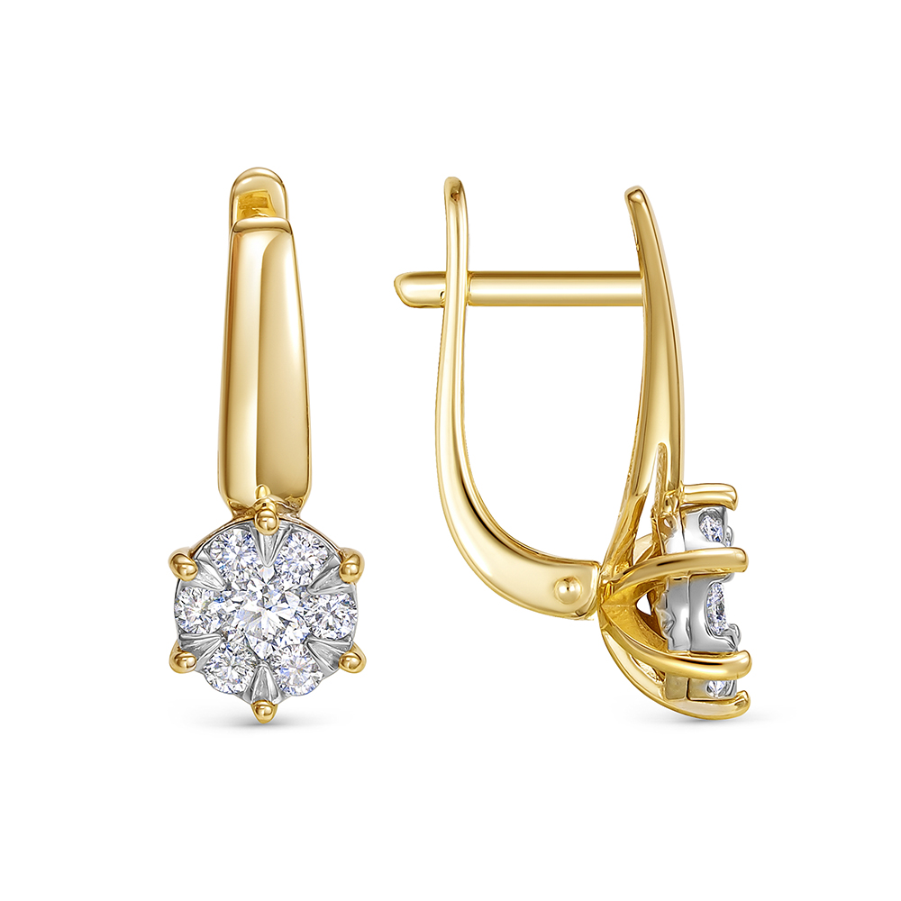 Серьги с 14 бриллиантами из лимонного золота 142815