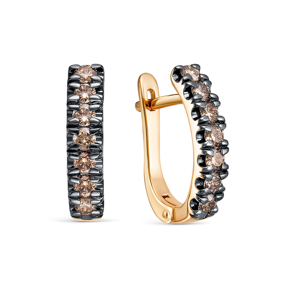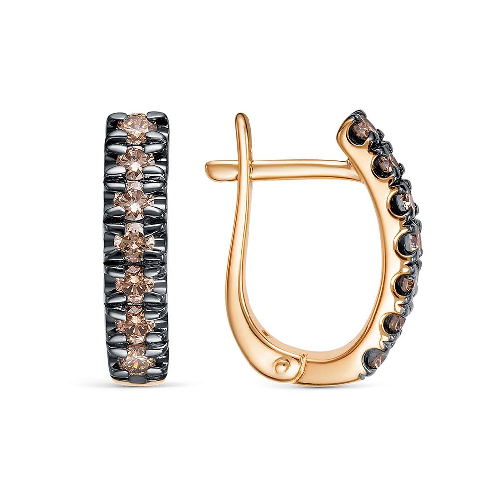 Серьги с 14 коньячными бриллиантами из красного золота 140764