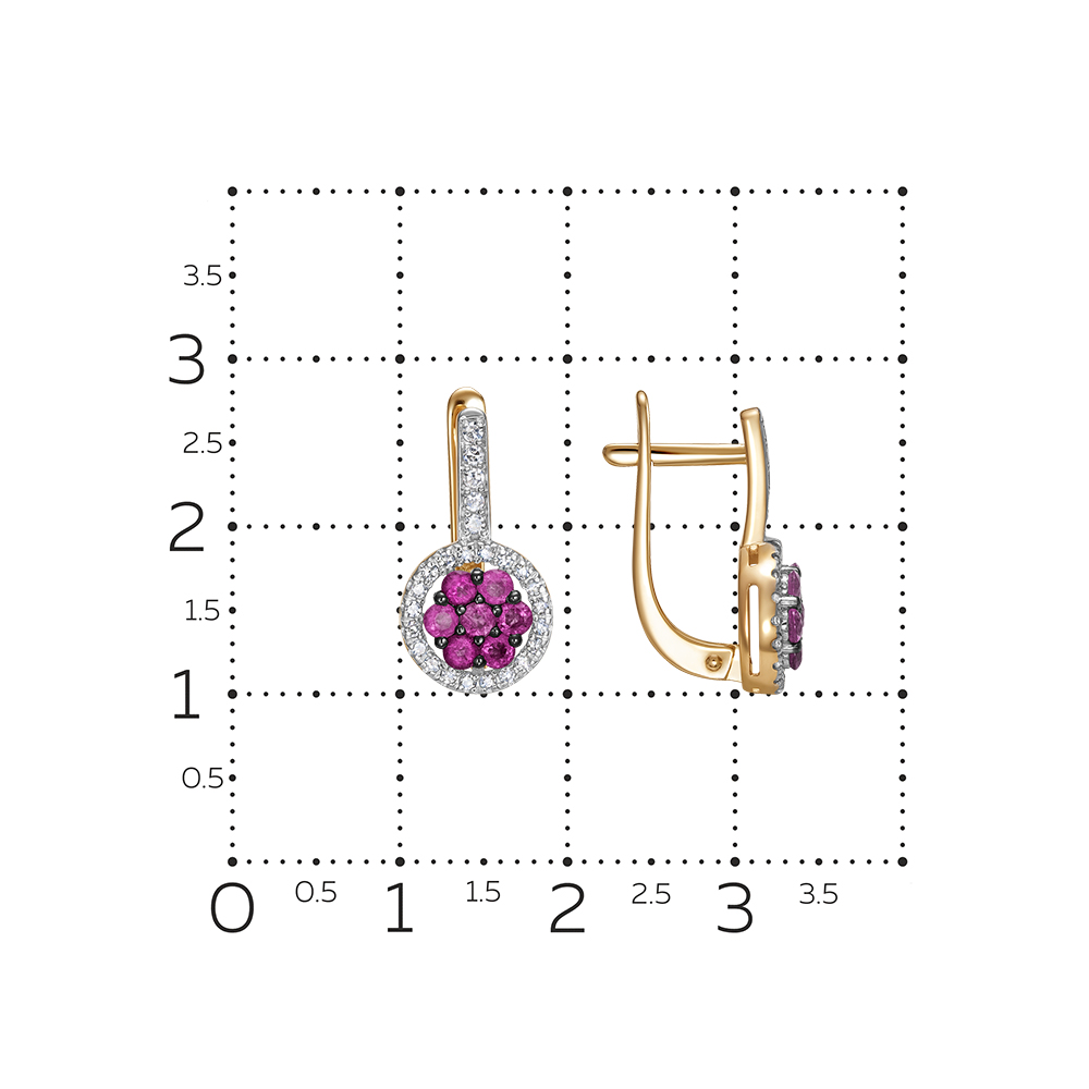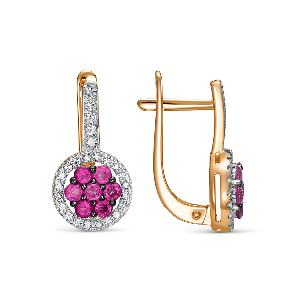 Серьги-пусеты с 14 рубинами и 40 бриллиантами из красного золота 143716 |