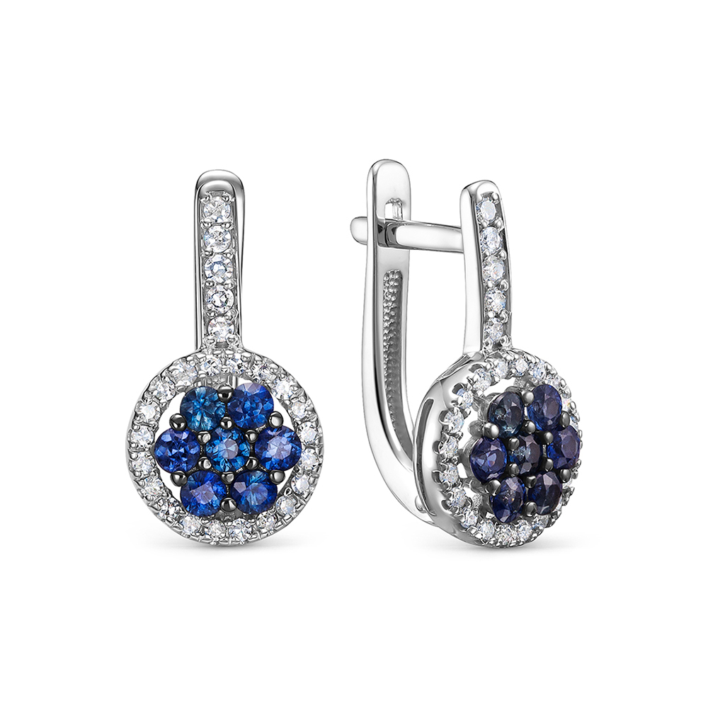 Серьги с 14 сапфирами и 50 бриллиантами из белого золота 142866
