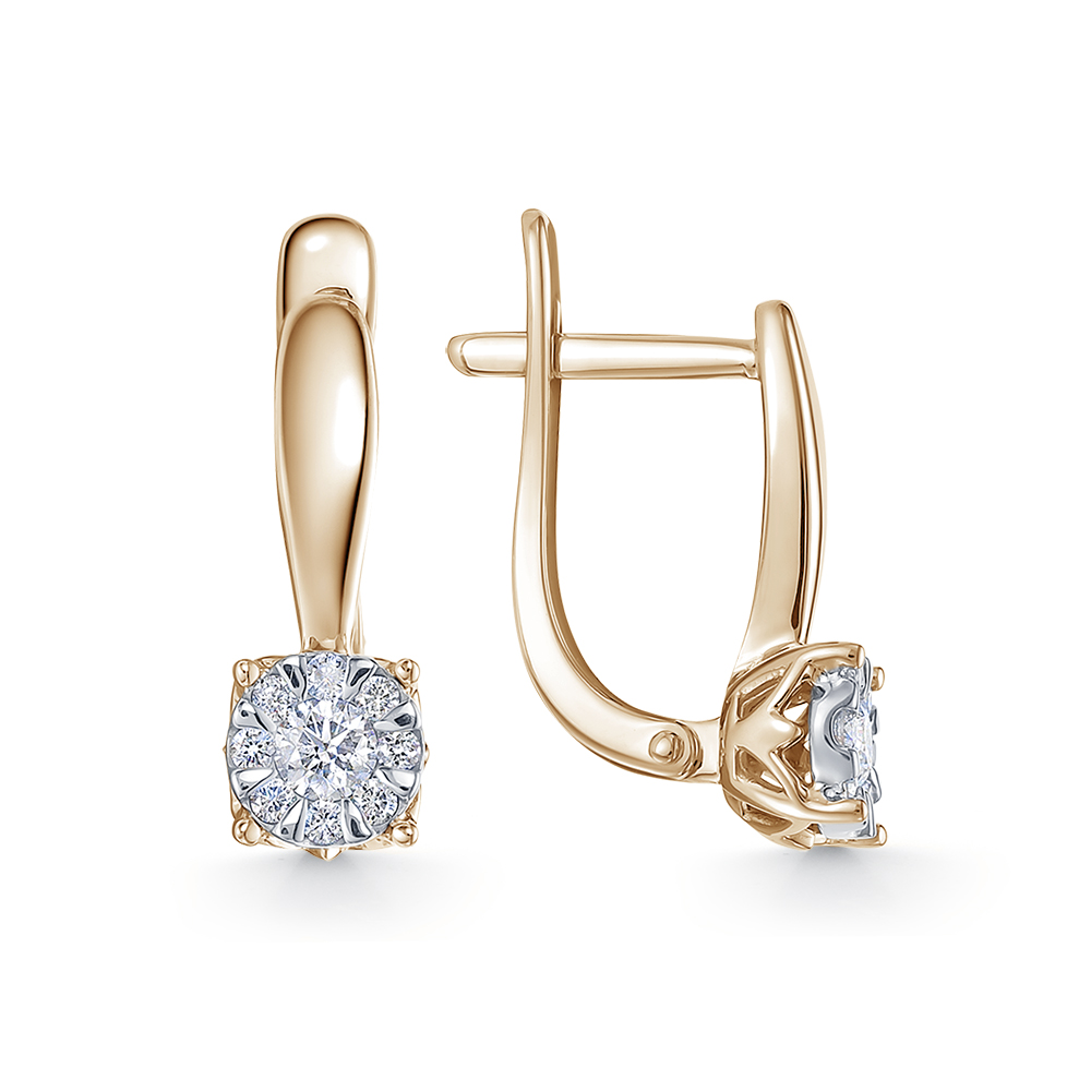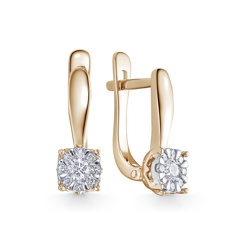 Серьги-пусеты с 18 бриллиантами из красного золота 114029 |