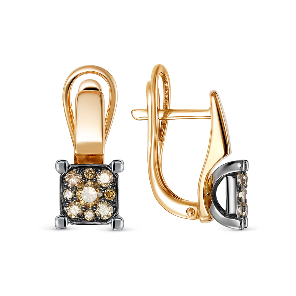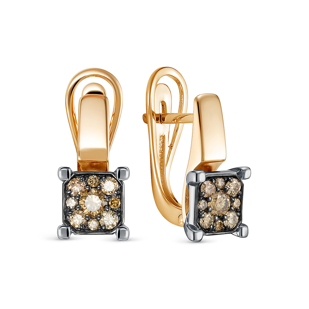 Серьги с 18 коньячными бриллиантами из красного золота 136370