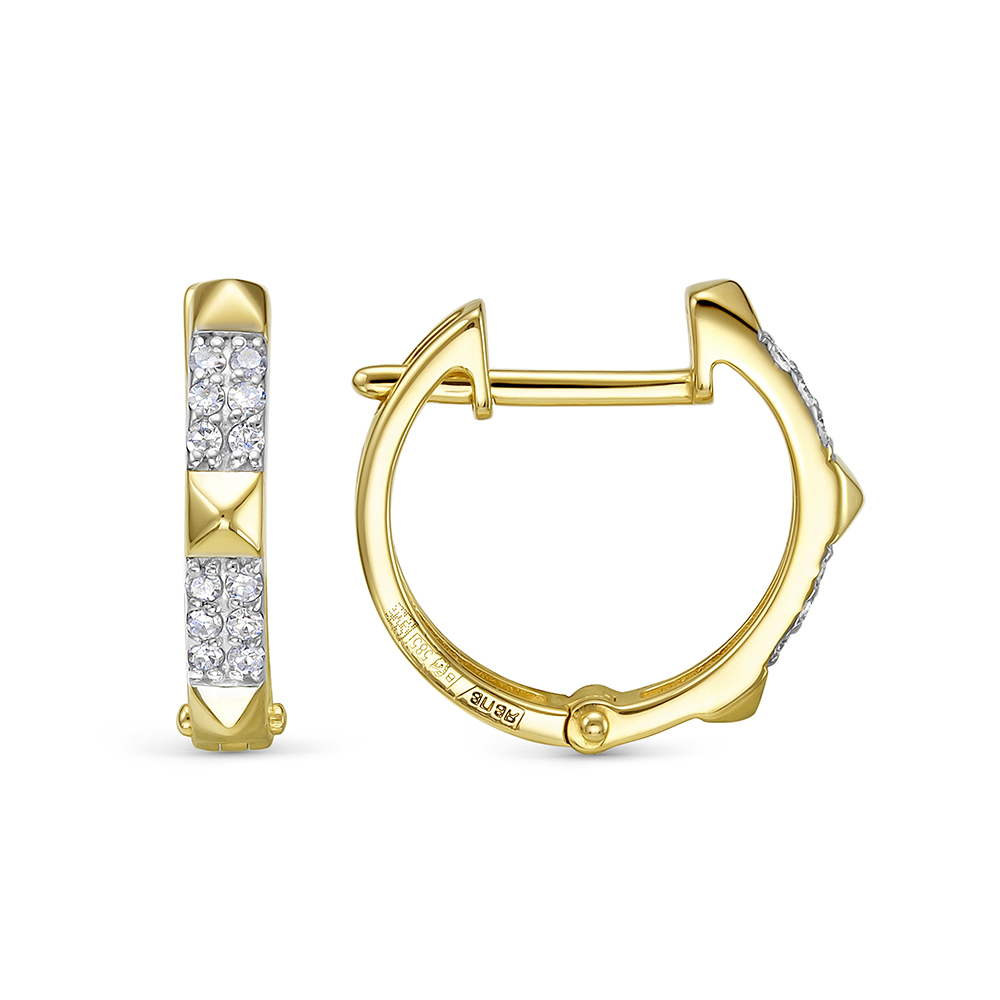 Серьги с 24 бриллиантами 0.12 карат из лимонного золота 140778