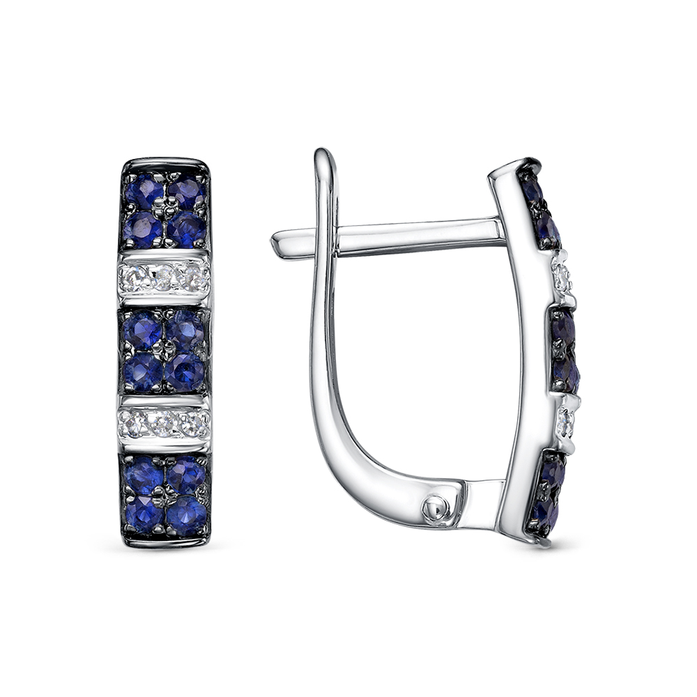 Серьги с 24 сапфирами и 12 бриллиантами из белого золота 129566
