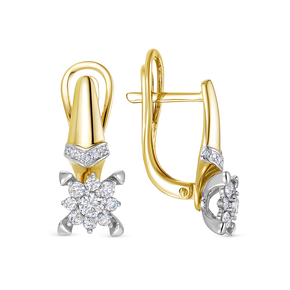 Серьги с 32 бриллиантами из лимонного золота 136369