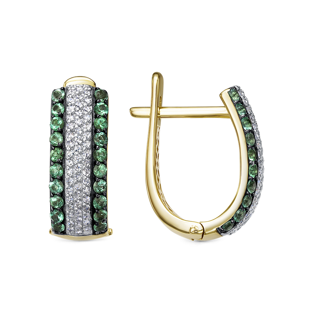 Серьги с 40 изумрудами и 104 бриллиантами из лимонного золота 131456