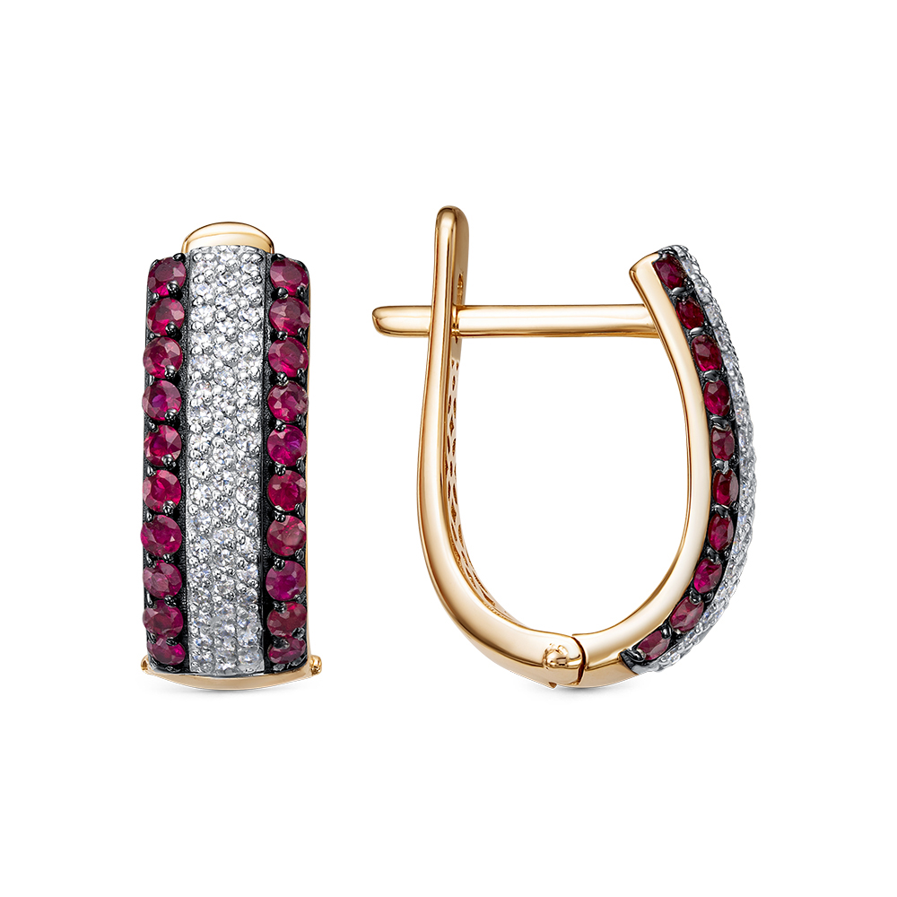 Серьги с 40 рубинами и 104 бриллиантами из красного золота 129559