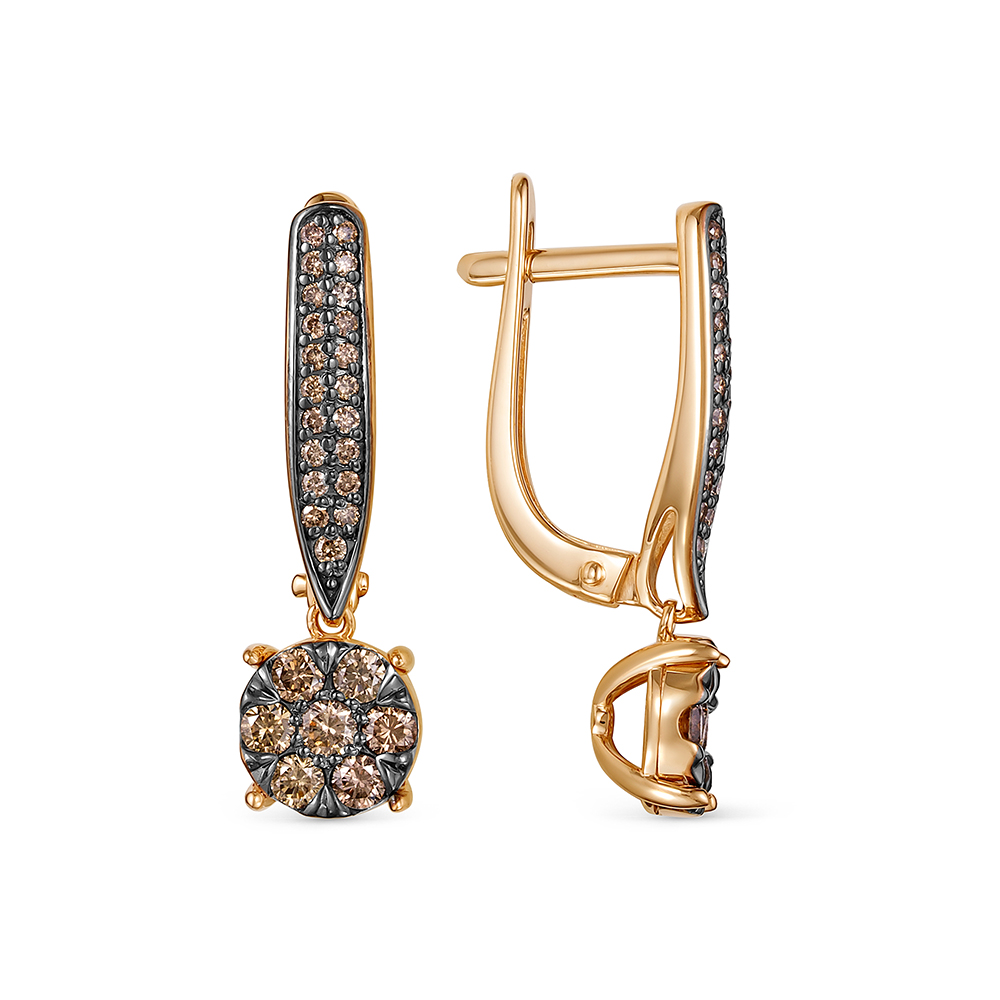 Серьги с 56 коньячными бриллиантами из красного золота 142817