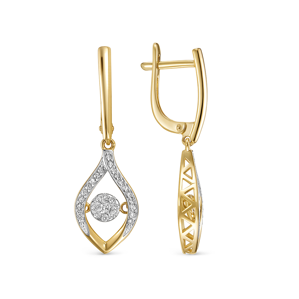 Серьги с 58 бриллиантами из лимонного золота 130502