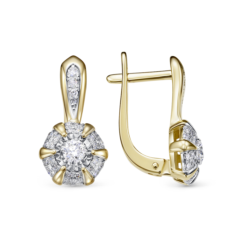 Серьги с 58 бриллиантами из лимонного золота 133249