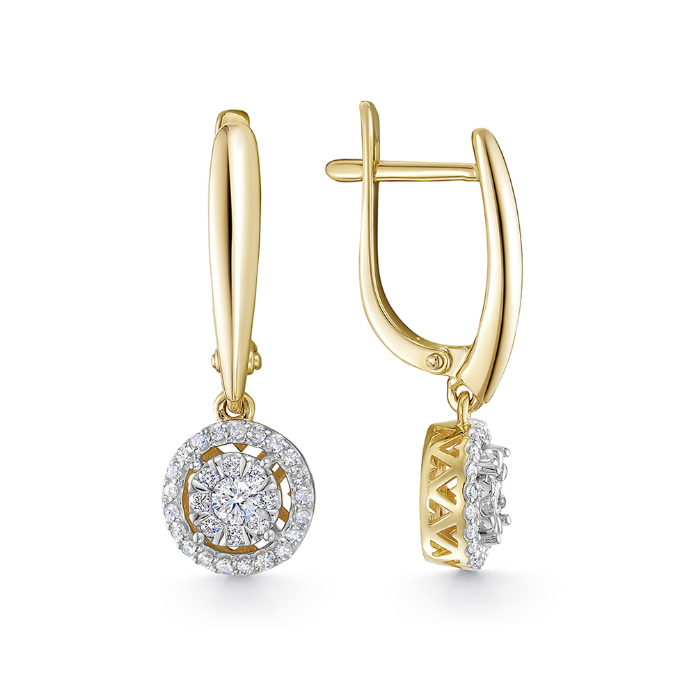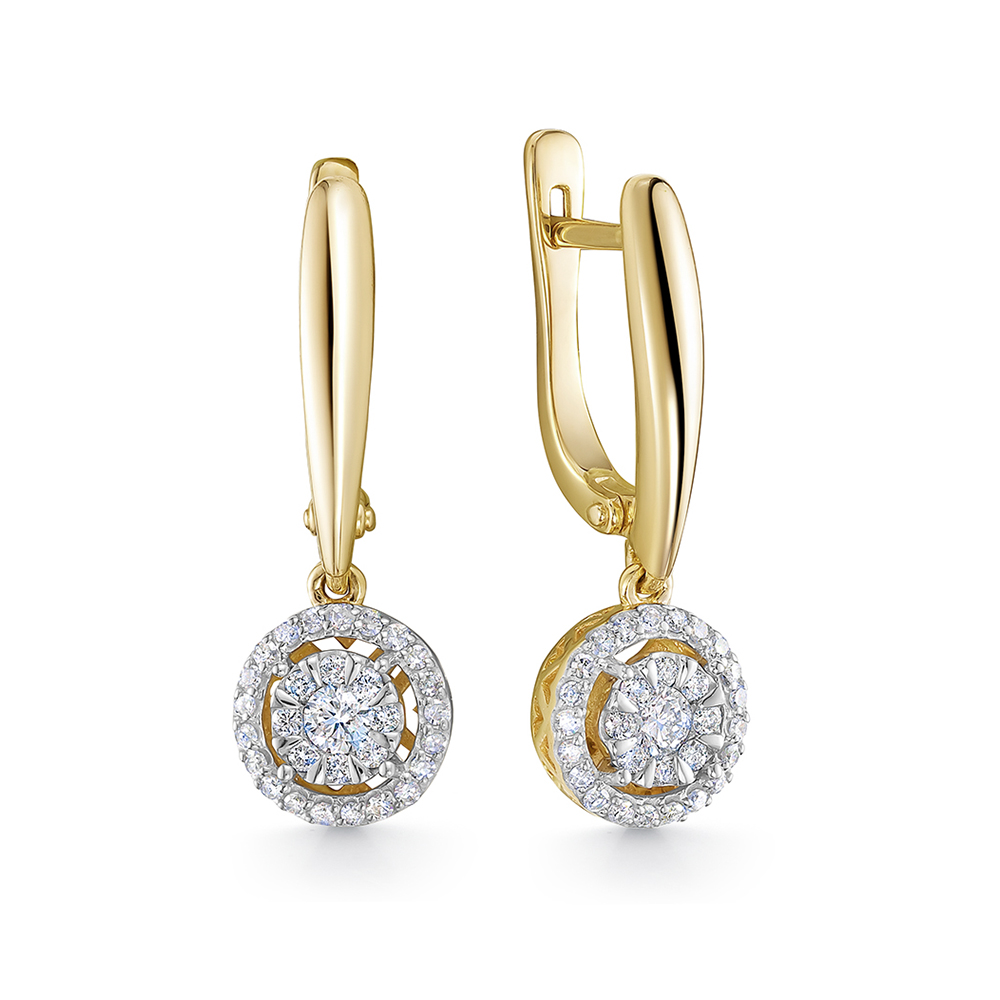 Серьги с 60 бриллиантами из лимонного золота 114021