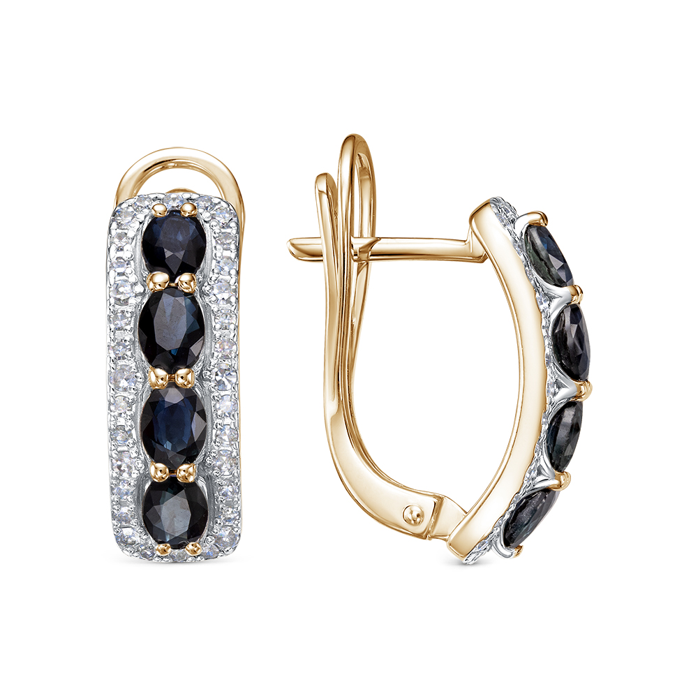 Серьги с 8 сапфирами и 64 бриллиантами из красного золота 129568