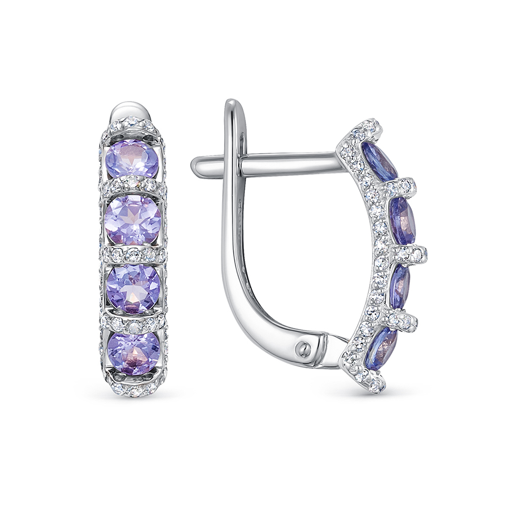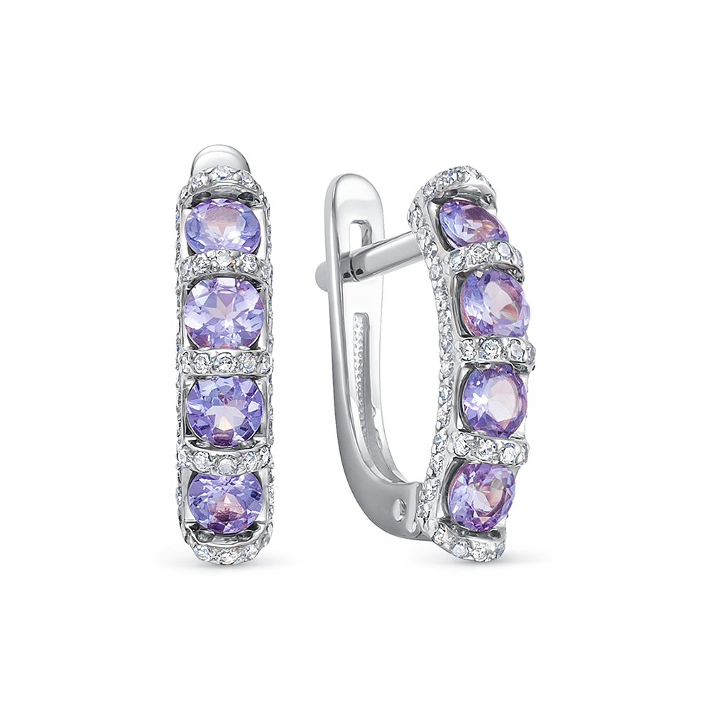 Серьги с 8 танзанитами и 106 бриллиантами из белого золота 129562
