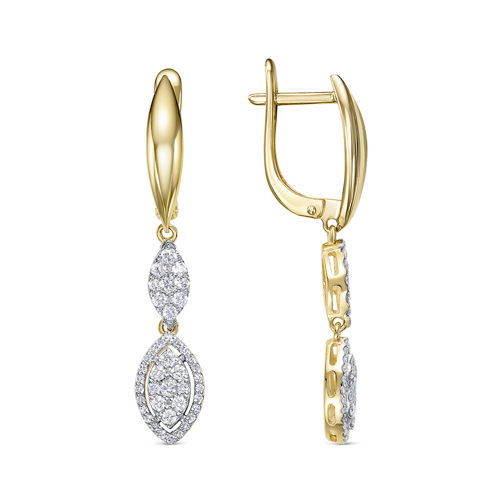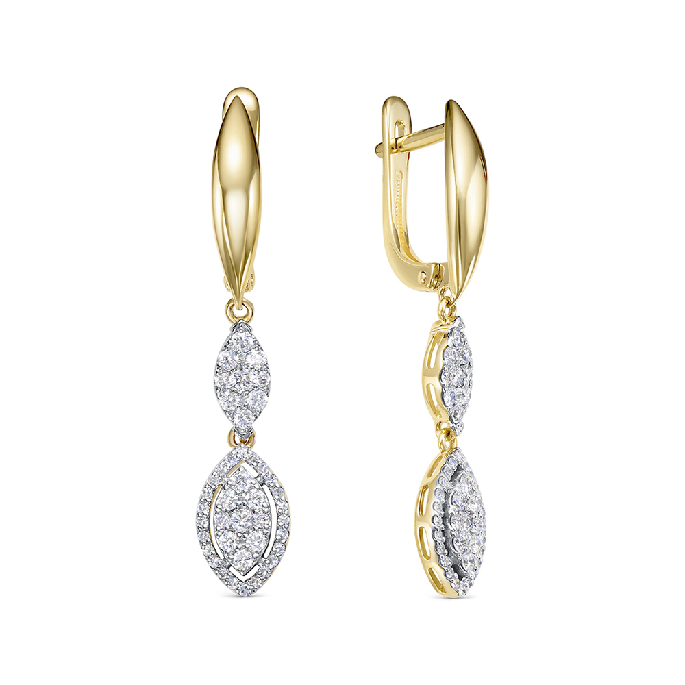 Серьги с 84 бриллиантами из лимонного золота 134419