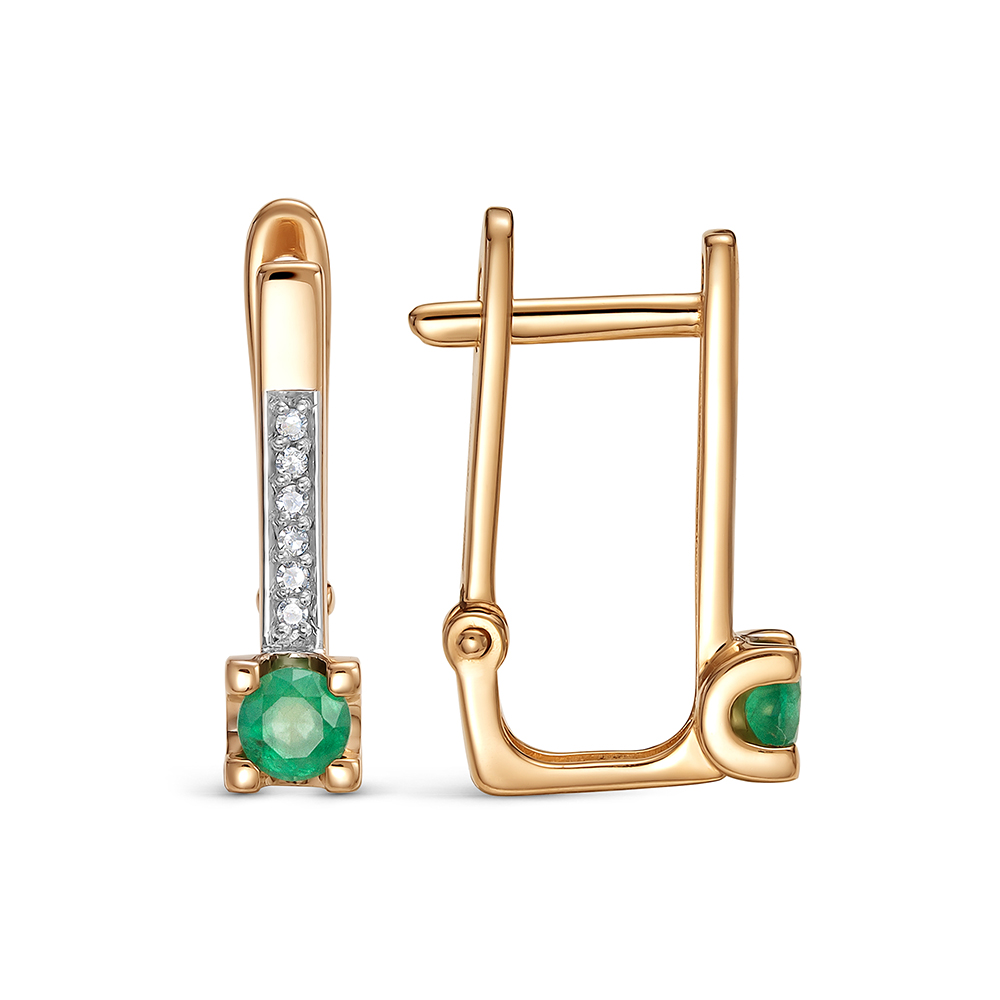 Серьги с изумрудами и 12 бриллиантами из красного золота 142846