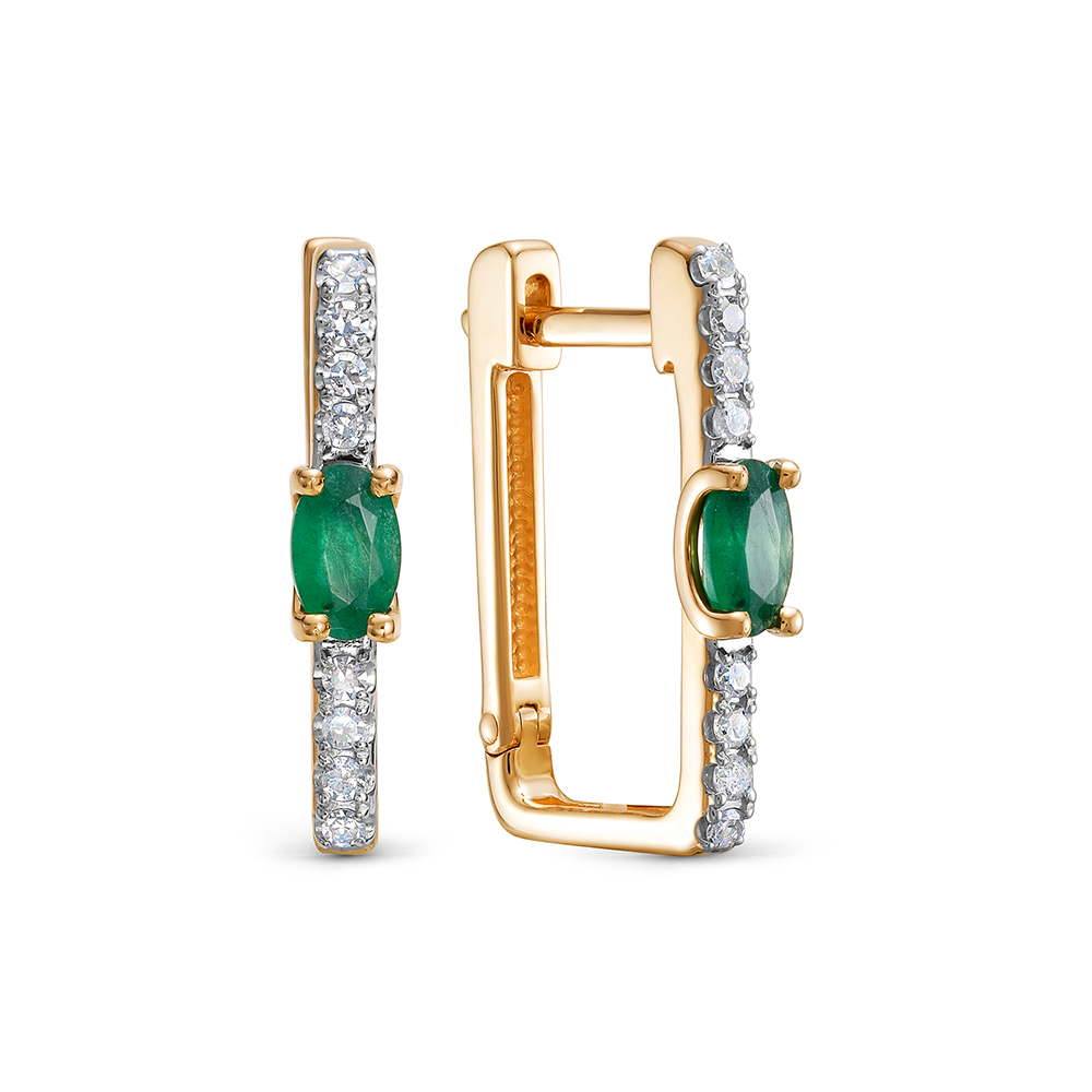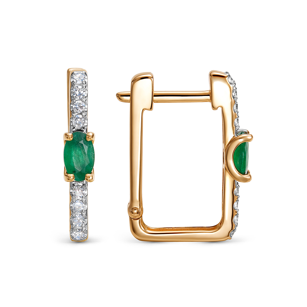 Серьги с изумрудами и 16 бриллиантами из красного золота 143668