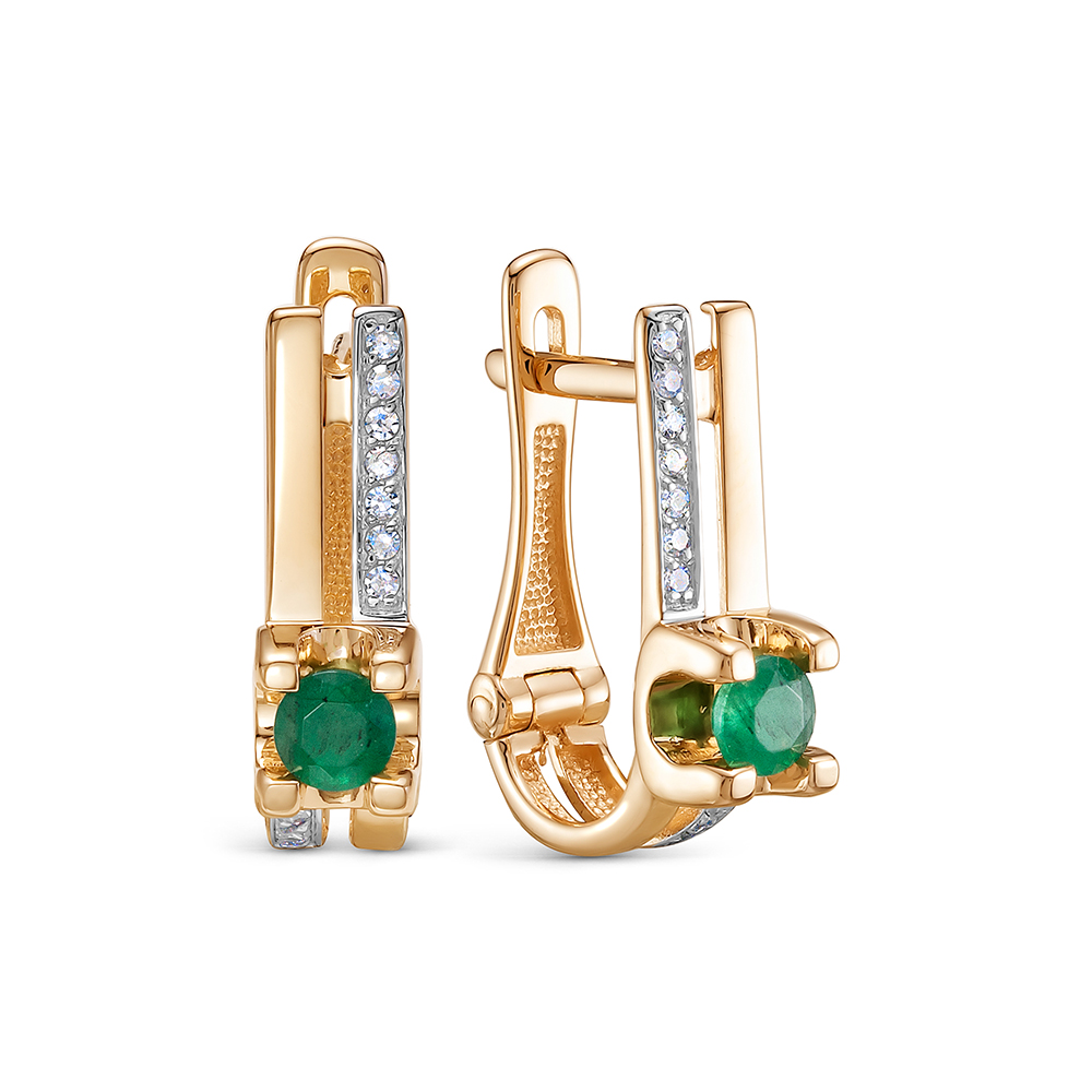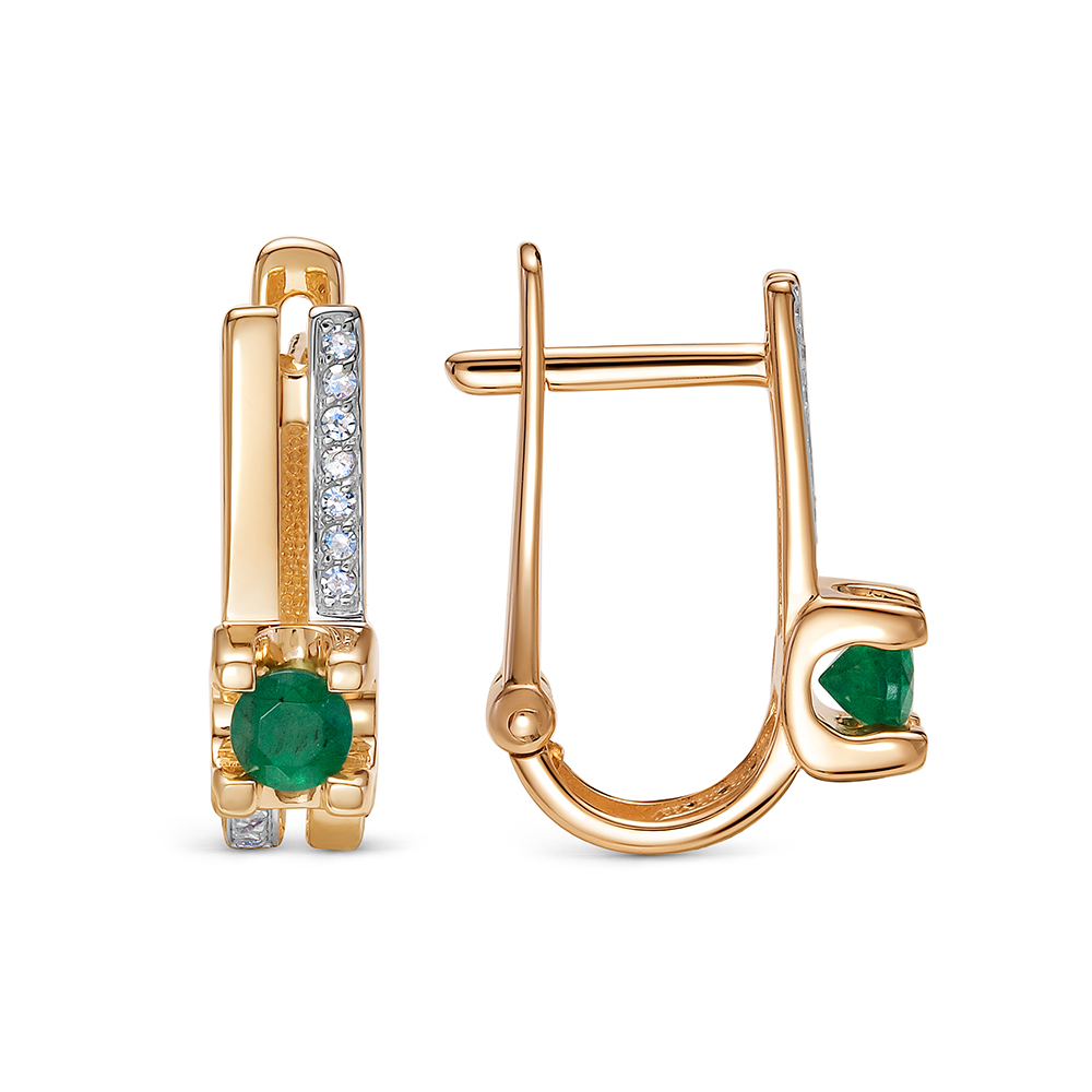 Серьги с изумрудами и 20 бриллиантами из красного золота 142842