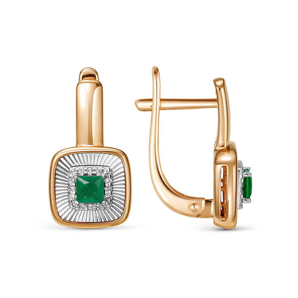 Серьги-пусеты с изумрудами и 32 бриллиантами из красного золота 137389 |