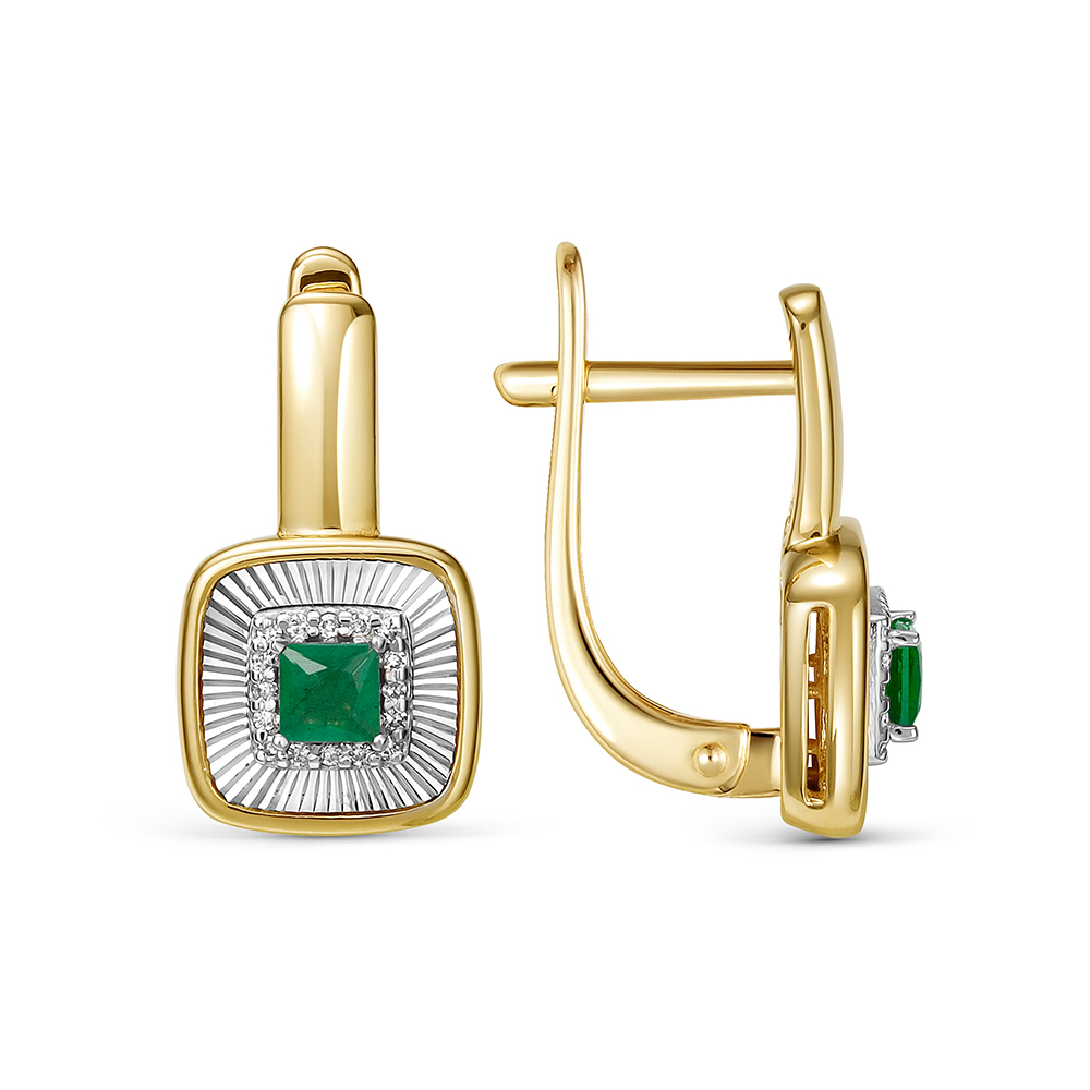 Серьги с изумрудами и 32 бриллиантами из лимонного золота 138862
