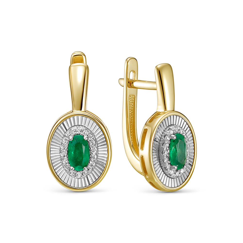Серьги с изумрудами и 32 бриллиантами из лимонного золота 138867