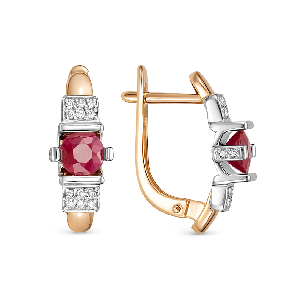 Серьги с рубинами и 32 бриллиантами из красного золота 125078