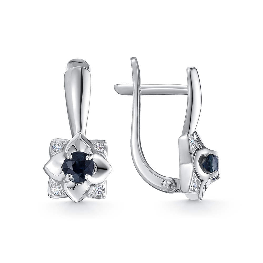 Серьги с сапфирами и 8 бриллиантами из белого золота 119295